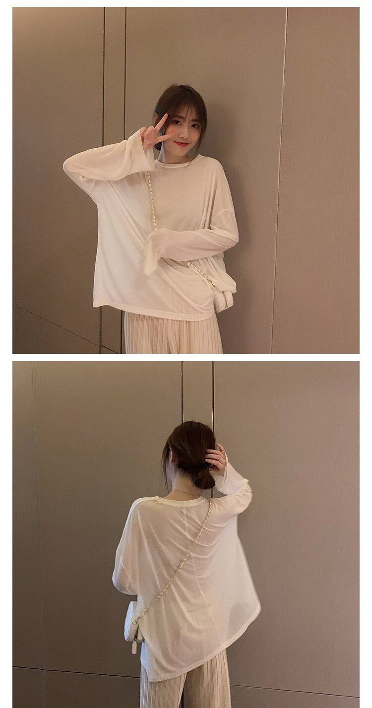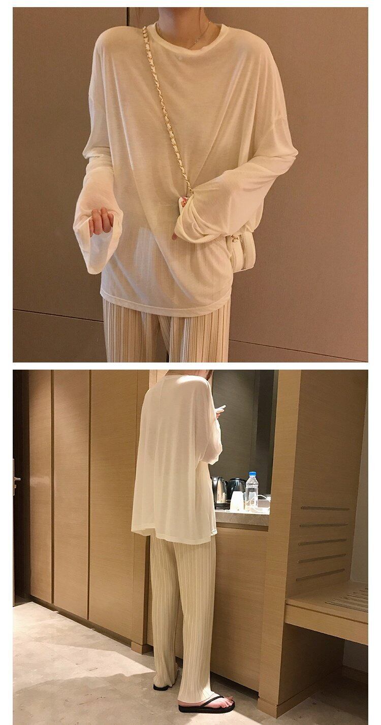 スプリング韓国ファッションルーズ薄手Tシャツレディース ロング 春物 ボーイズ スタイル 長袖 コーデ marchs6793403406516