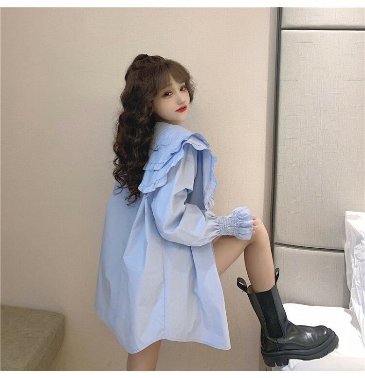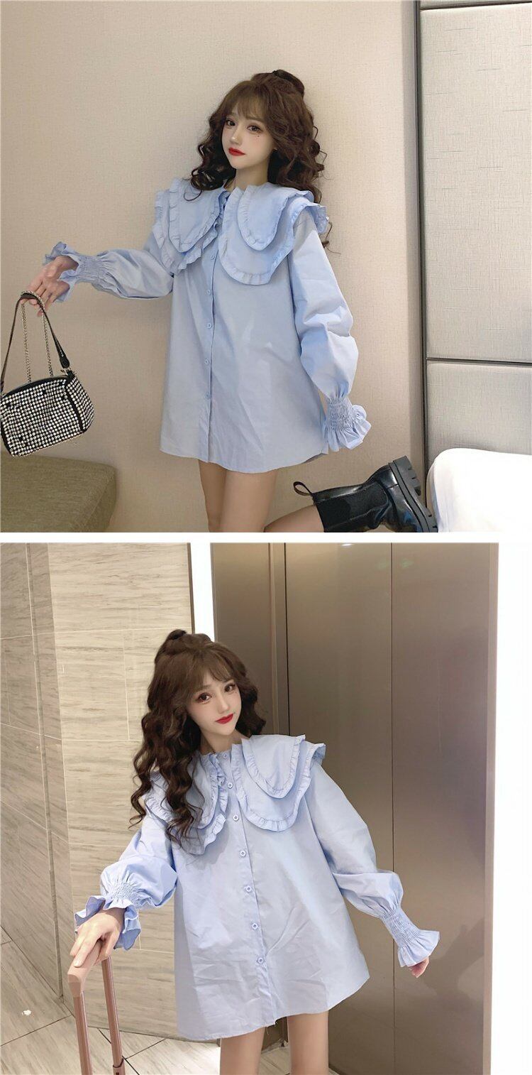 ブルーカラーシャツ スプリングスリーブホワイト 春物 コーデ marchs6721778437039