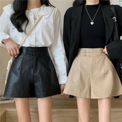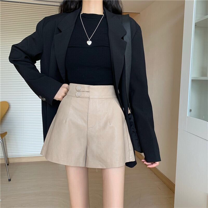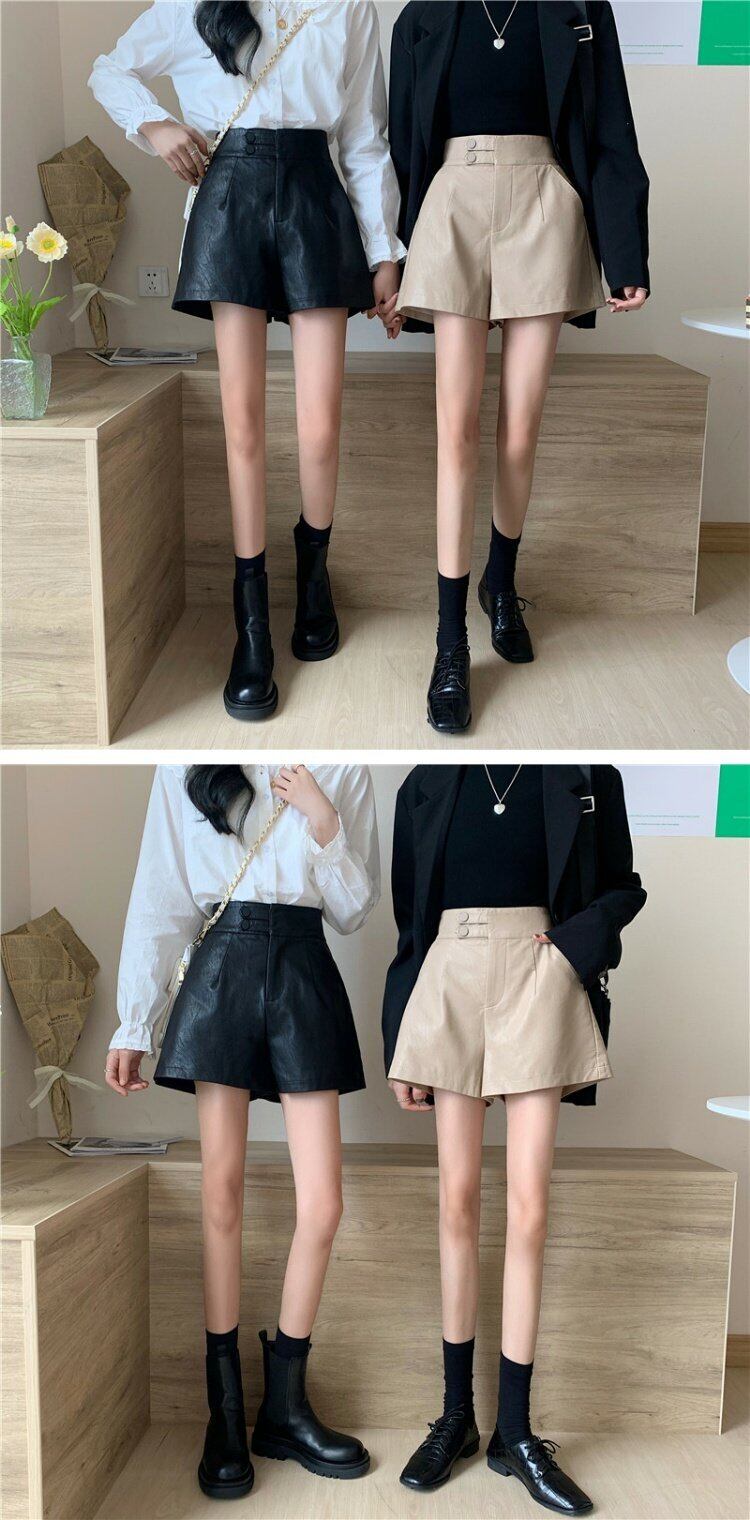 レザーパンツ ショーツ スプリング秋物ハイウェストウェスト薄手ルーズ 春物 オータム ウエスト コーデ marchs6799924203459