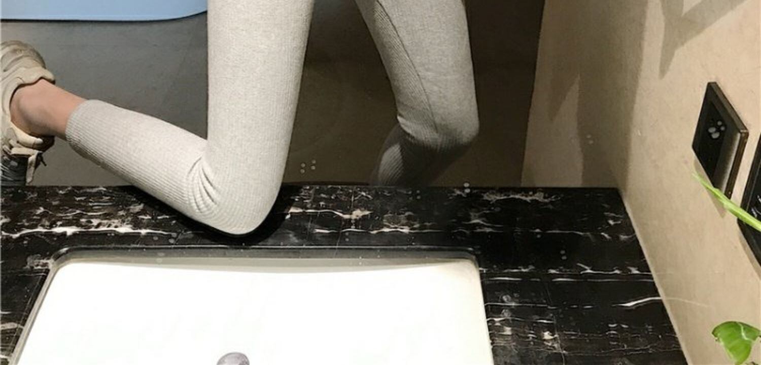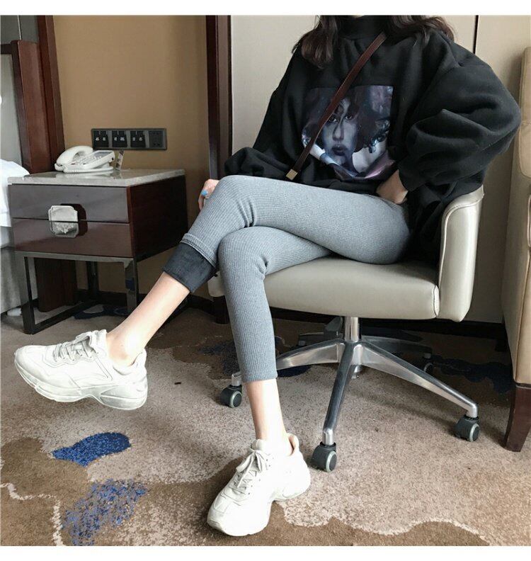 ロング厚み薄手グレーパンツ コットン コーデ marchs6799357402793