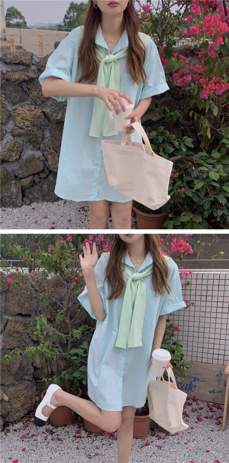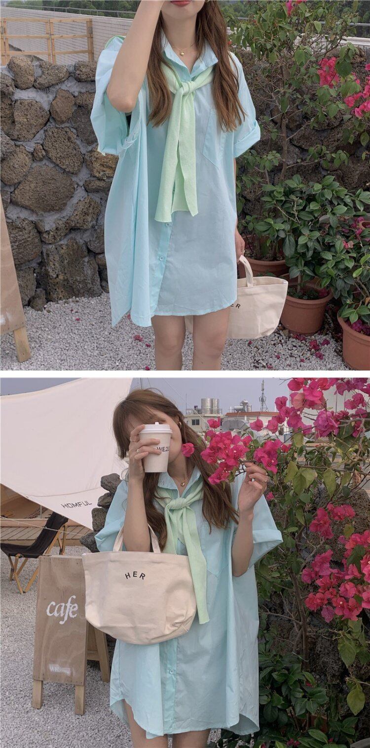 夏服カラールーズシャツ ショールトップス 夏物 ミドル丈 コーデ marchs6727462766810