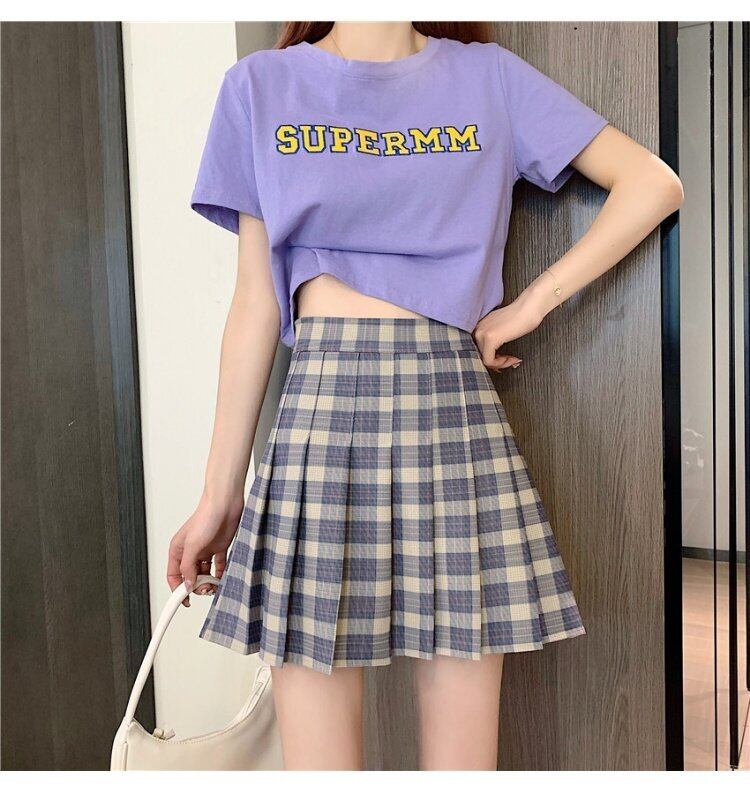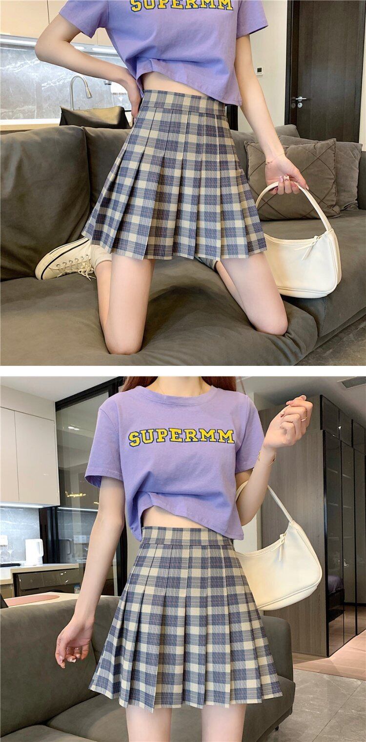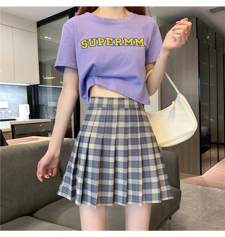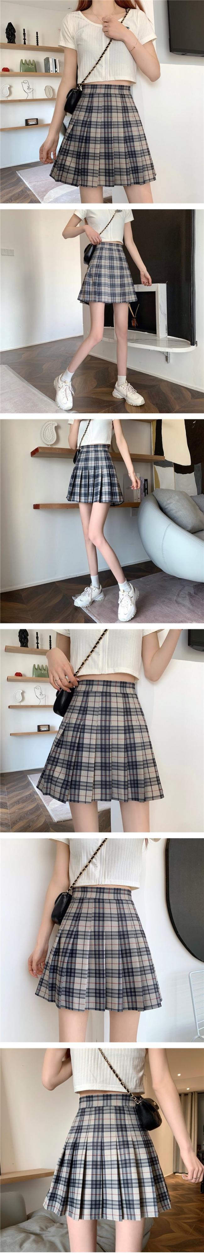プリーツスカート スプリング夏服Aラインハイウェストウェストスリム格子柄ショート 春物 夏物 ウエスト コーデ marchs6727829776611