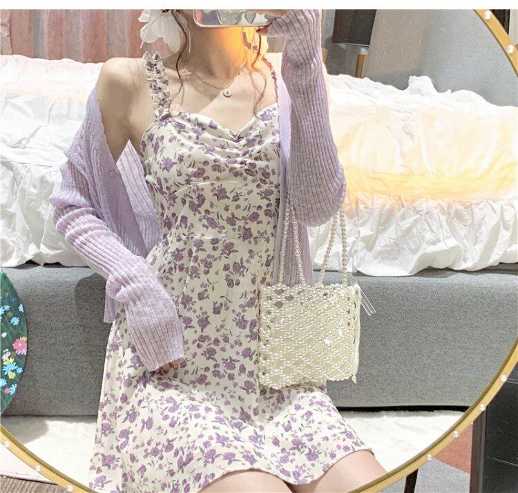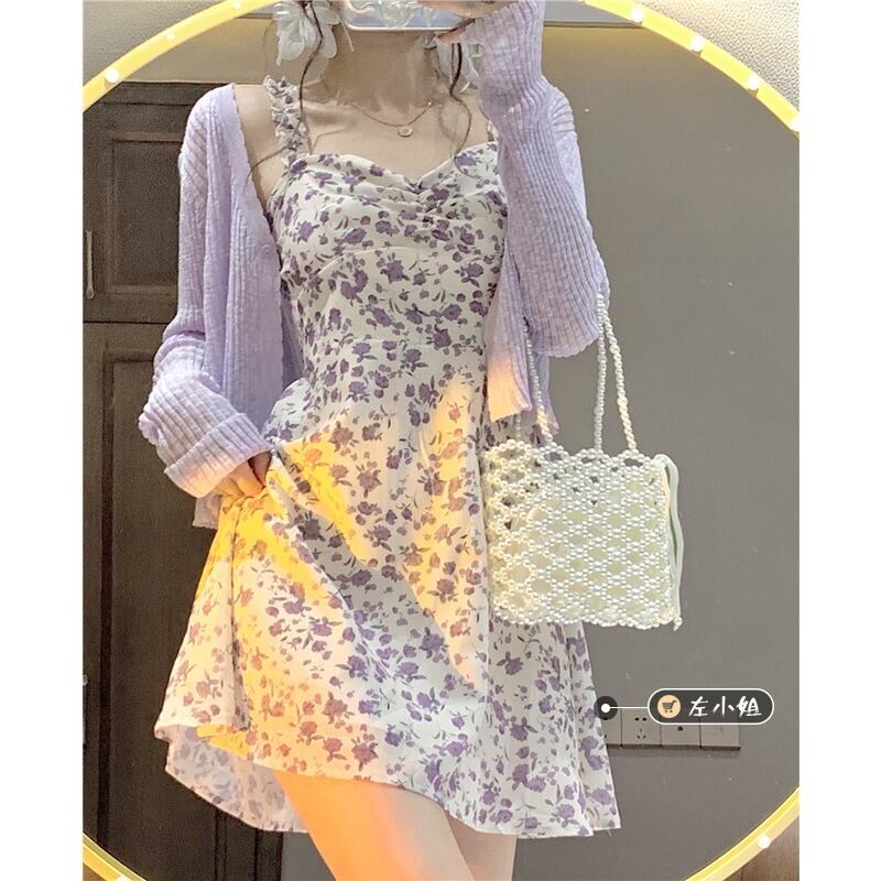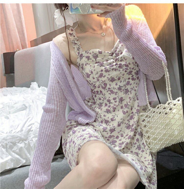 レディース夏服カーディガンジャケット フローラルシフォン 夏物 花柄 シルク パープル コーデ marchs6785460414123