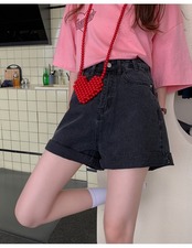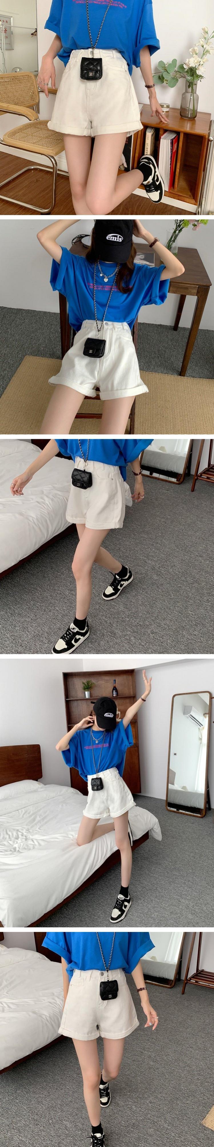 ショーツ レディース夏服薄手ハイウェストウェストルーズスタンダードブルー レトロ 大きめサイズ 夏物 ウエスト コーデ marchs6798371616462