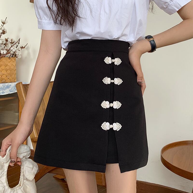 夏服スタイルバックルスタンダードショートスカート Aラインハイウェストウェスト薄手ブラックレディース レトロ 夏物 ウエスト コーデ marchs6725969229083