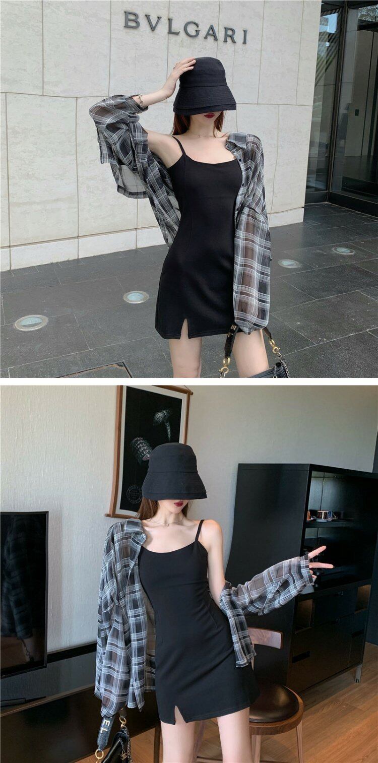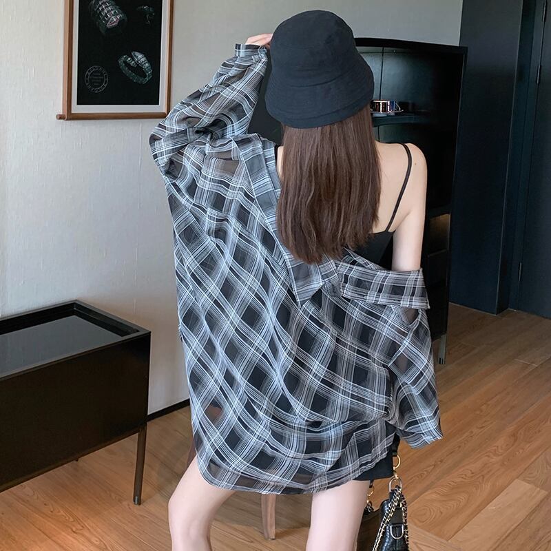 スプリングスタンダードルーズ薄手スタイル格子柄シャツ レディーストップス ロング レトロ 春物 長袖 コーデ marchs6731715634348