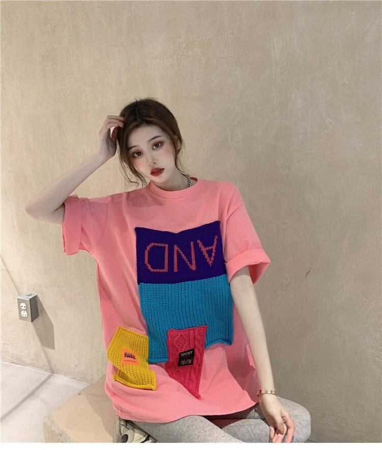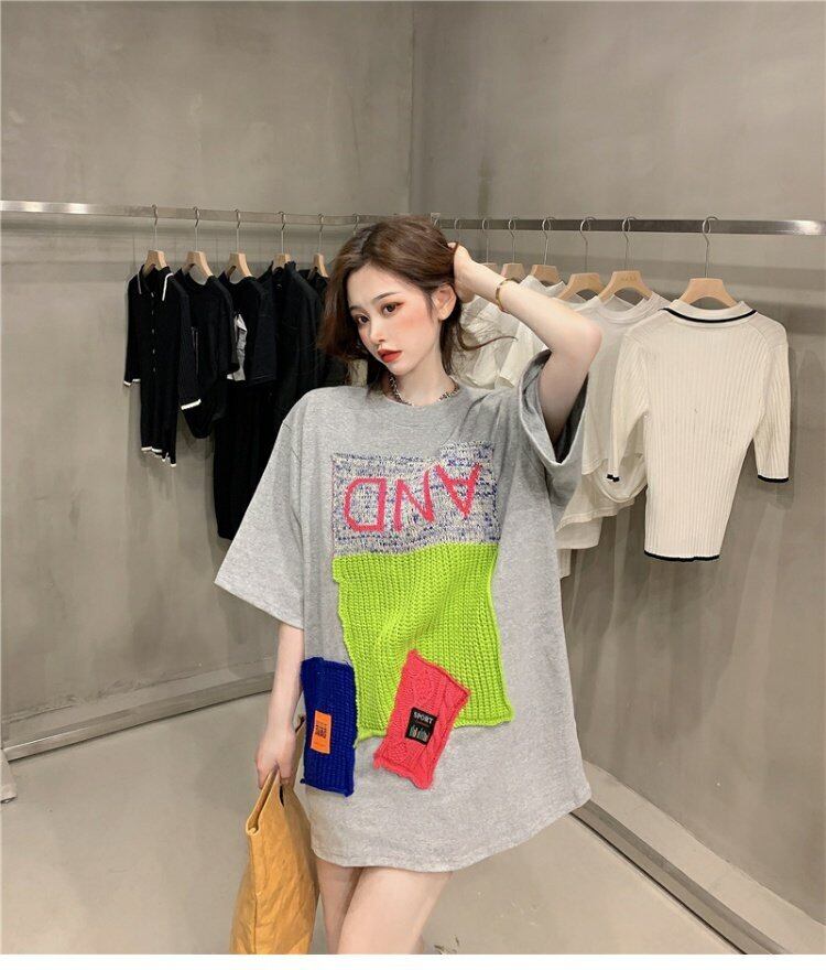 Tシャツシャツ 夏服スプリング秋物ゆったりトレンド 春物 夏物 オータム ステッチ コーデ marchs6737515016007