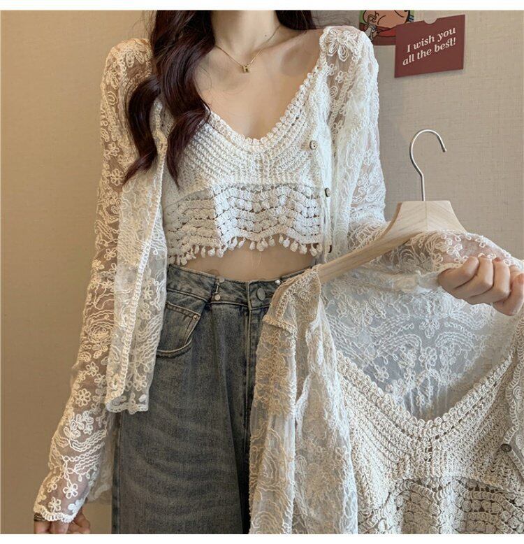 夏服スタイルジャケット 薄手レースカーディガンレディース レッド 夏物 シルク コーデ marchs6721563024939