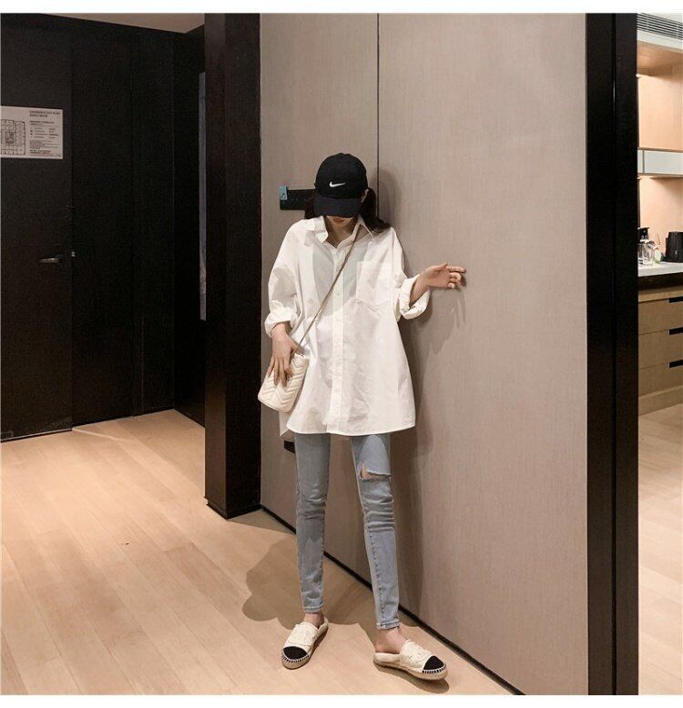 スプリングスタイルルーズホワイトシャツ レディース ロング 春物 ボーイズ 長袖 ミドル丈 コーデ marchs6754991267762