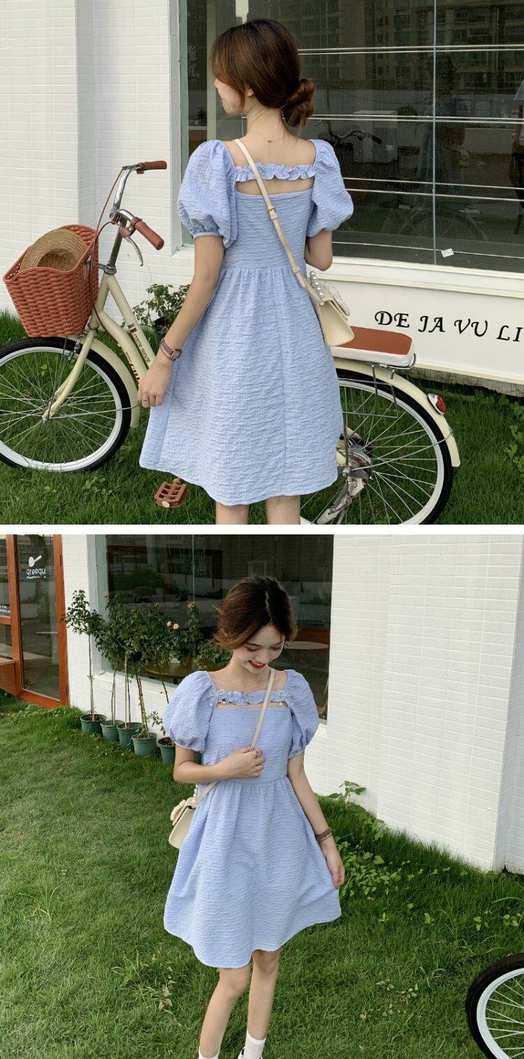 スリーブワンピースレディース夏服ブルースカート 大人ガーリー スウィート キュート カジュアル 夏物 コーデ marchs6786657415975