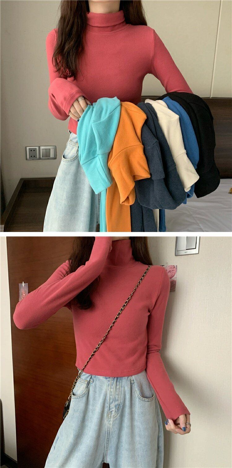 スプリング韓国ファッションスタイルショートトップス カラー厚みゆったりシャツ ブルーTシャツレディース ロング 春物 長袖 コーデ marchs6740545039947