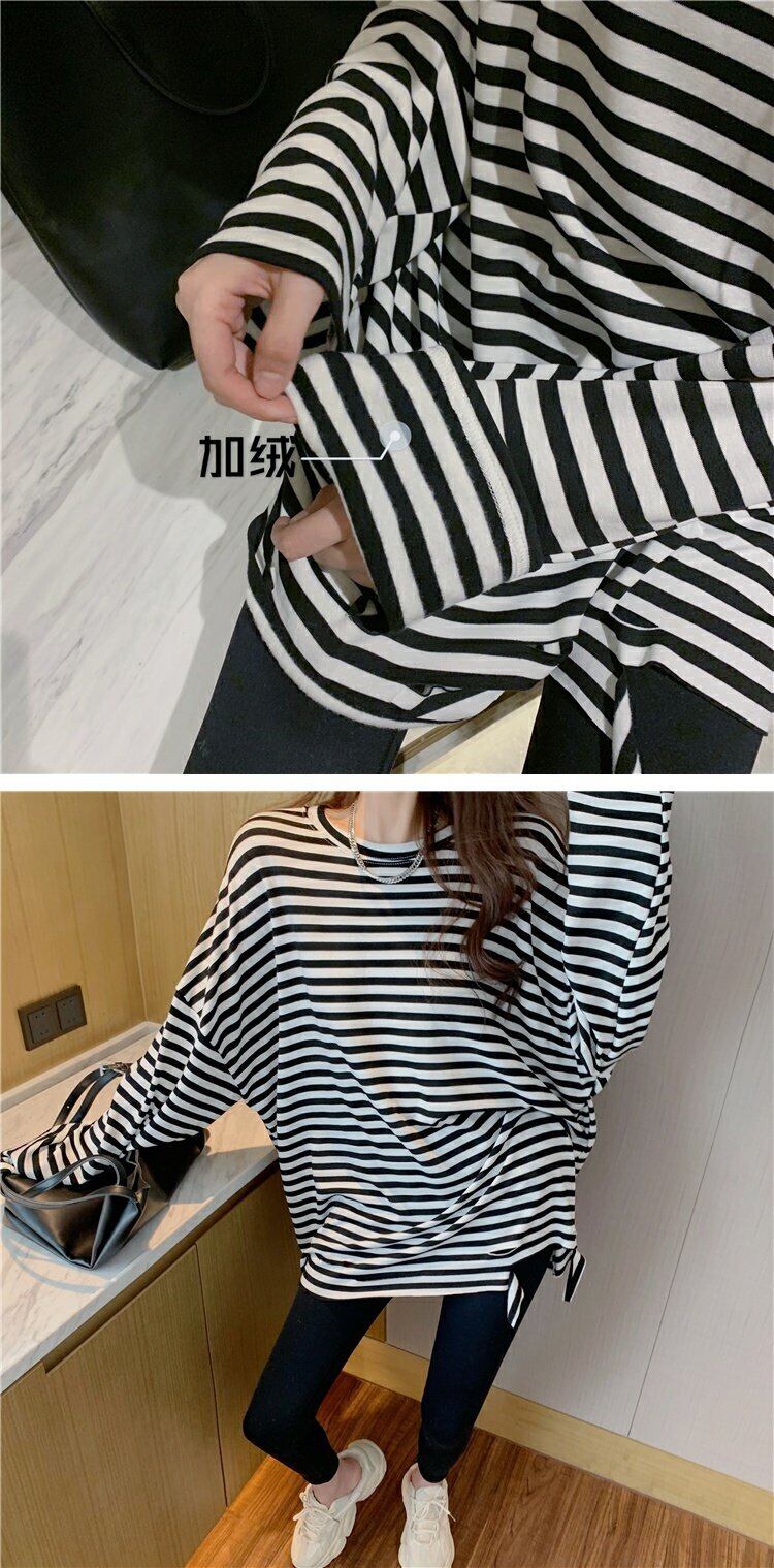 スプリングルーズストライプTシャツシャツ ゆったり ロング 春物 長袖 ミドル丈 コーデ marchs674779022645