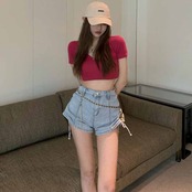 ギャザーショーツ レディースパンツ 夏服薄手ハイウェストウェストAライン 夏物 ウエスト コーデ marchs6759967722106