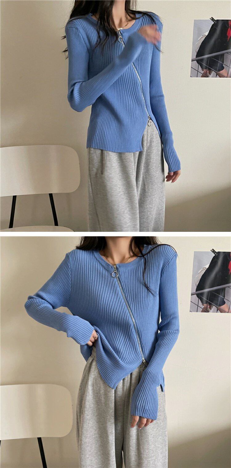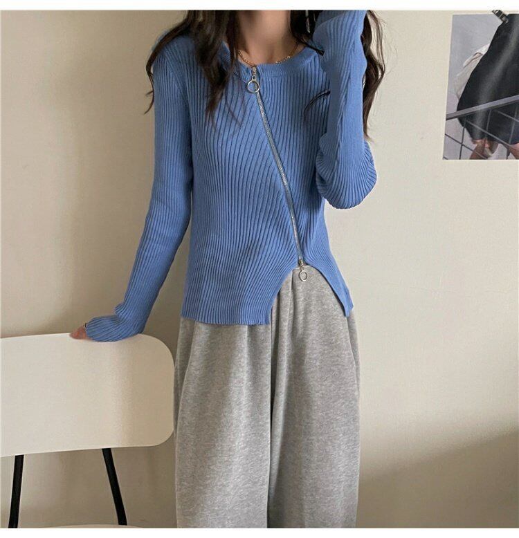 ジャケット スプリング秋物ジッパーショートニットセーター ブラックスリムカーディガントップス 春物 オータム コーデ marchs6792084730541