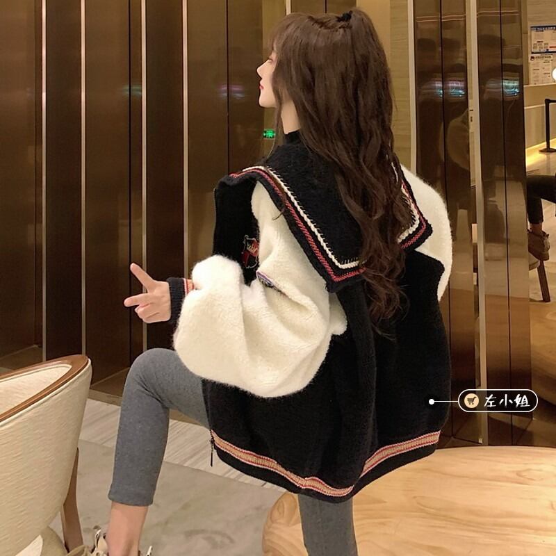 コート レディース秋物ウィンターネイビーカラールーズトップス トレンド オータム 冬物 コーデ marchs6731724716891