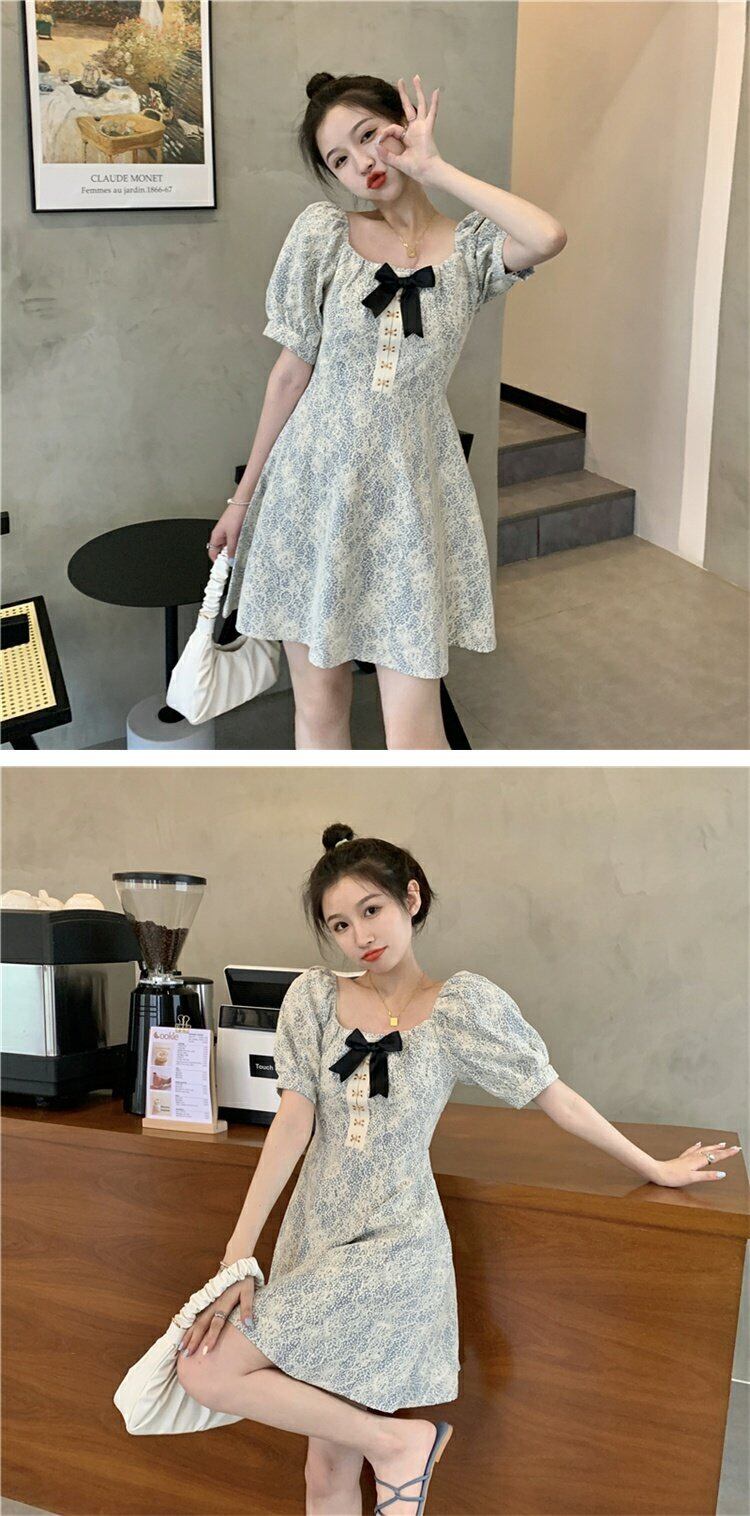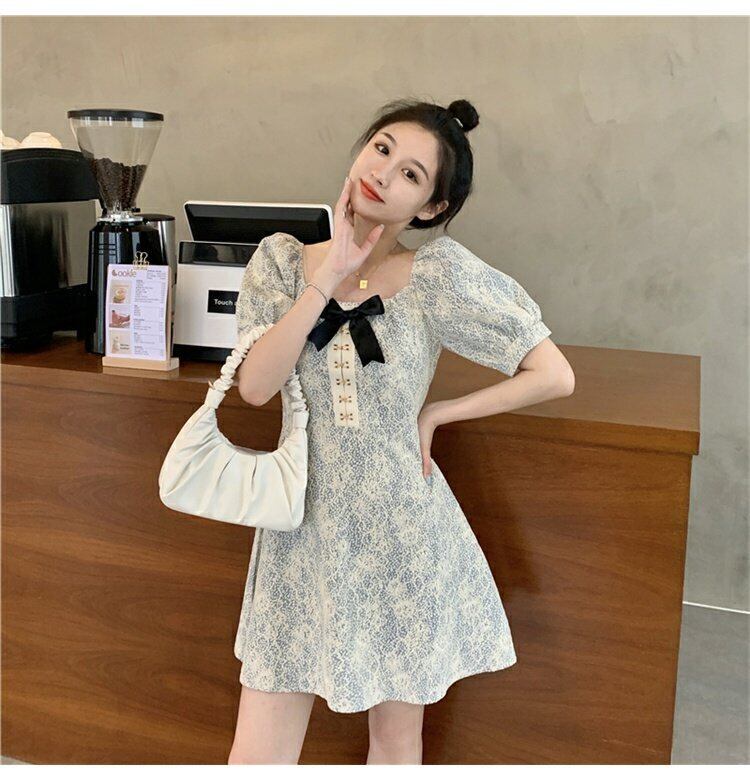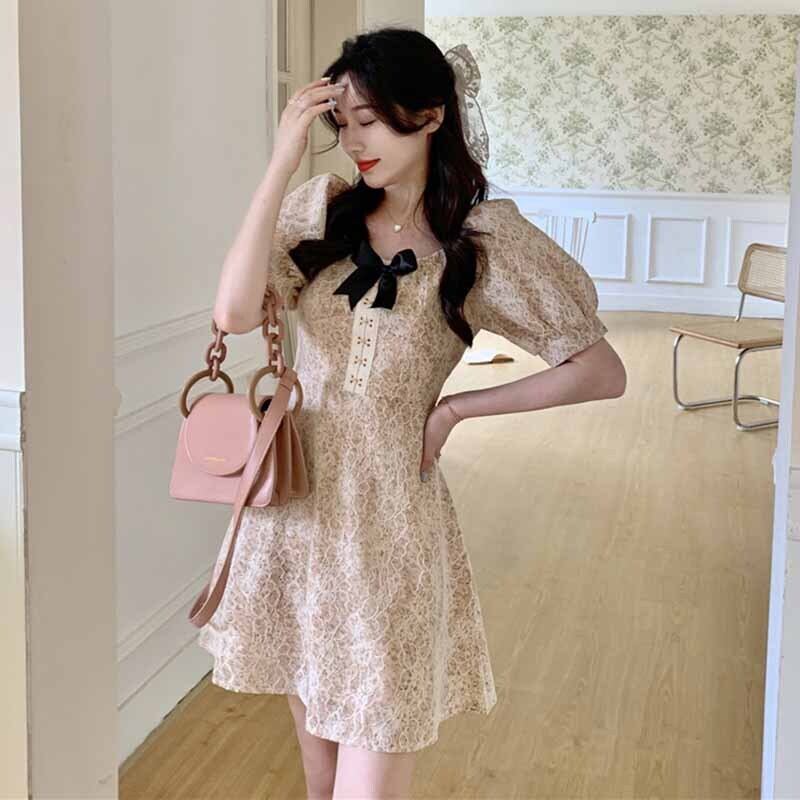 夏服スタイルスリーブリボンウェストレースワンピースレディーススカート 夏物 スクウェア ウエスト コーデ marchs6754133694901