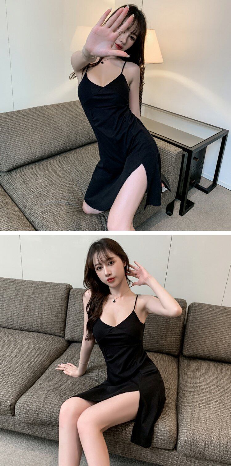 スタンダードワンピースレディース夏服スリム薄手ブラックスカート レトロ 夏物 コーデ marchs6783283903589