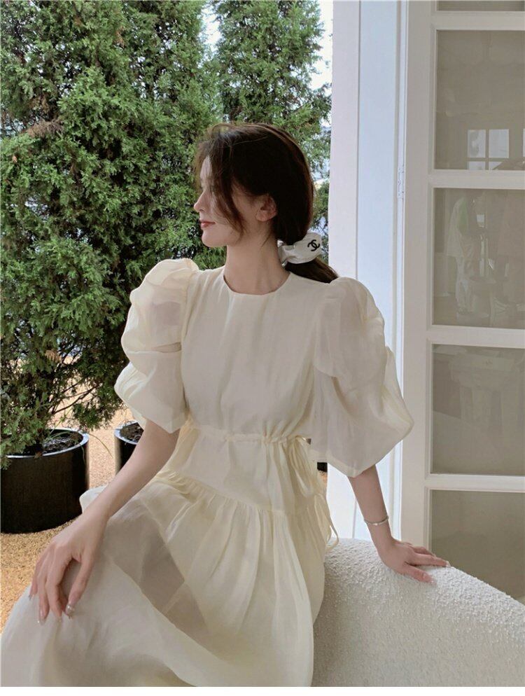 夏服ワンピーススリーブウェストロングスカート 大人ガーリー スウィート キュート カジュアル 夏物 ウエスト コーデ marchs676221521719