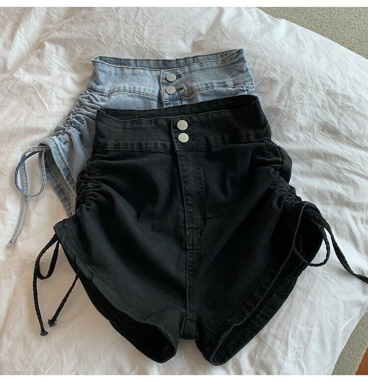 ギャザーショーツ 夏服薄手ストラップ ハイウェストウェストブラックパンツ 大きめサイズ 夏物 ピュア ウエスト コーデ marchs677108061882
