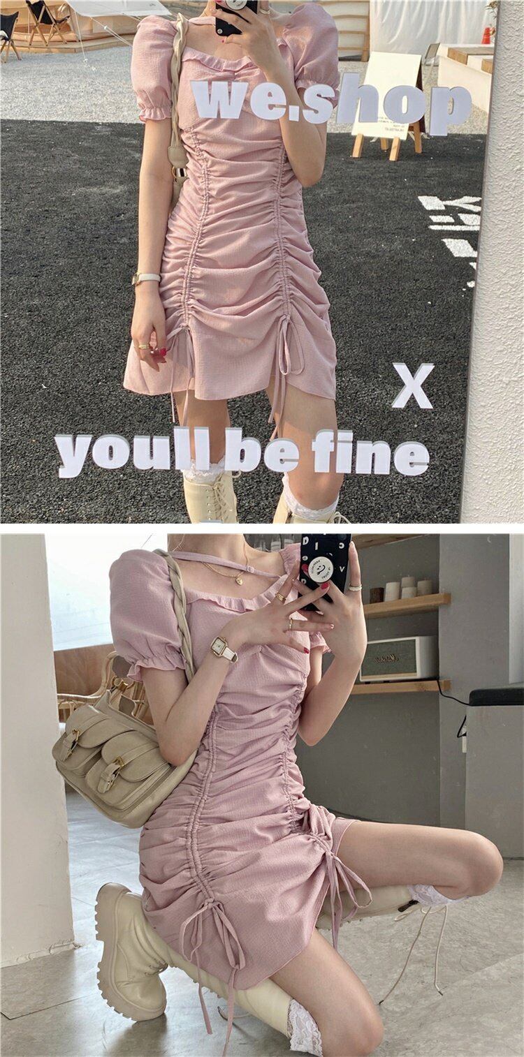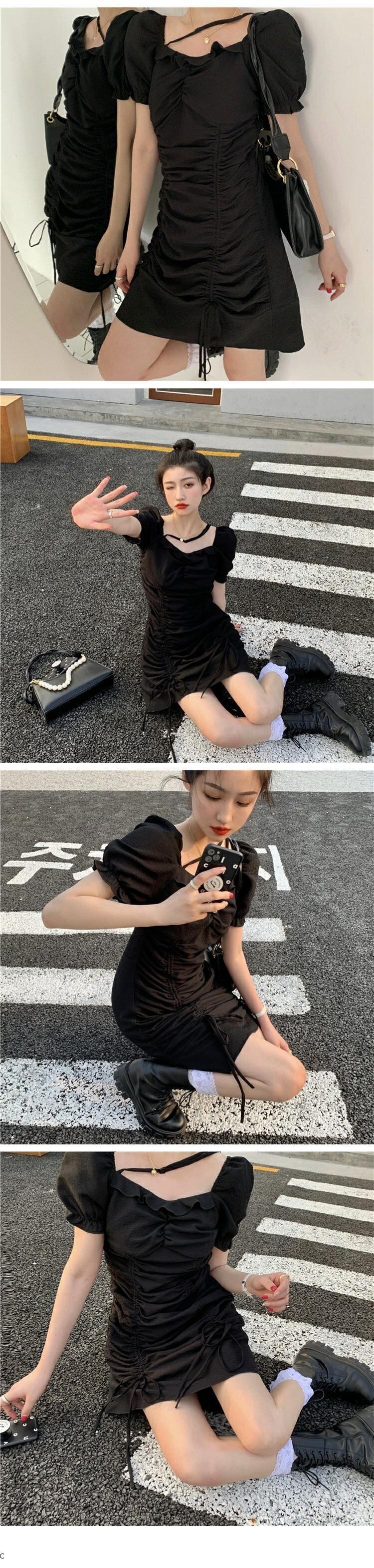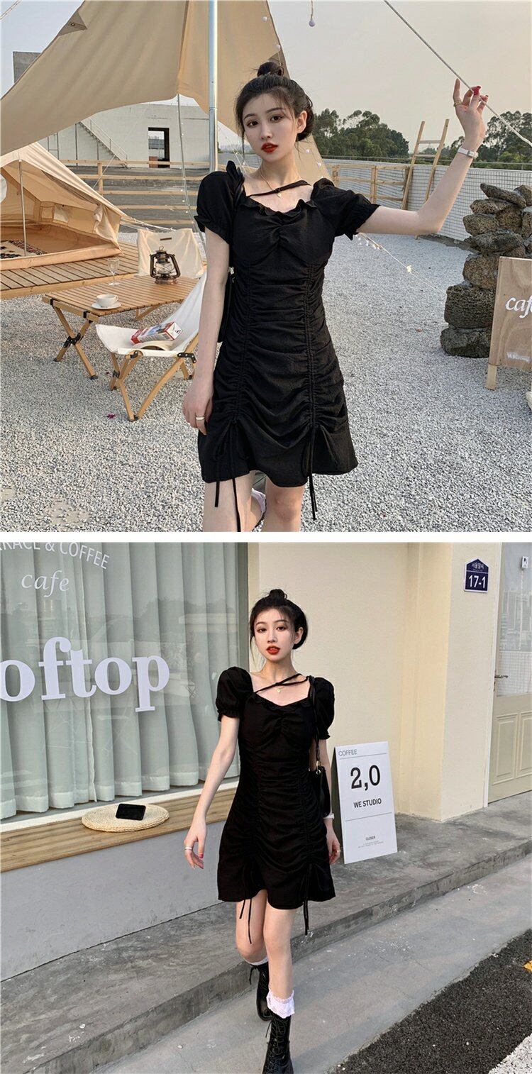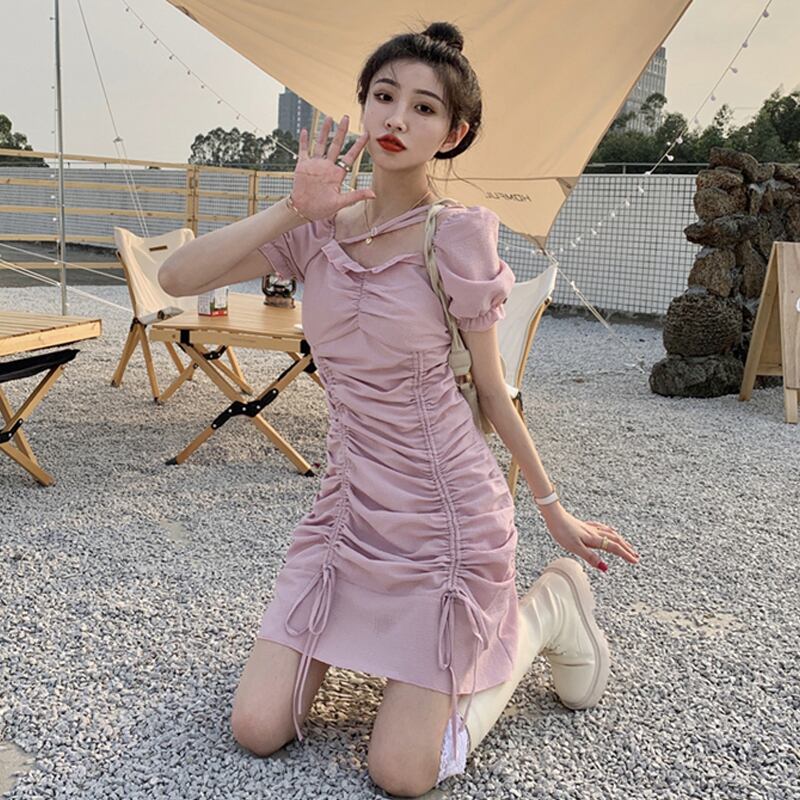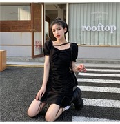 夏服スリーブスカート スタンダードワンピースレディース レトロ 夏物 スクウェア コーデ marchs6732168283595