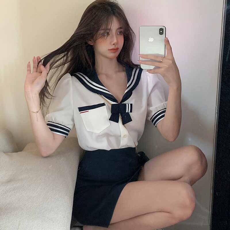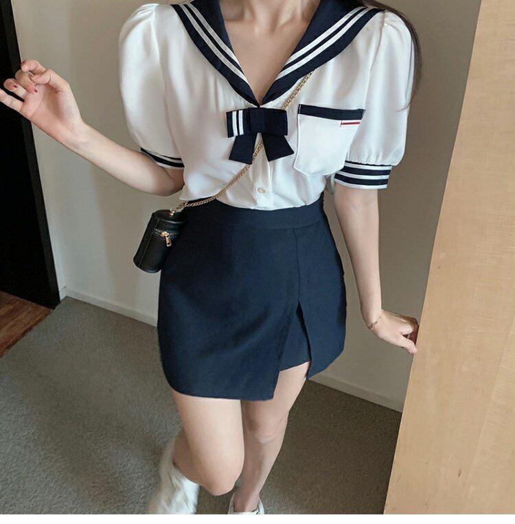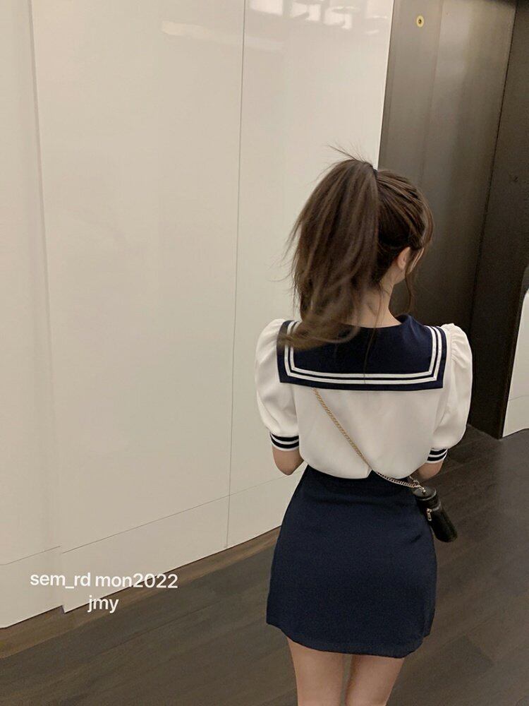 夏服スタイルシャツ ネイビーカラートップス Aラインスカート 大人ガーリー スウィート キュート カジュアル 夏物 コーデ marchs679103082812