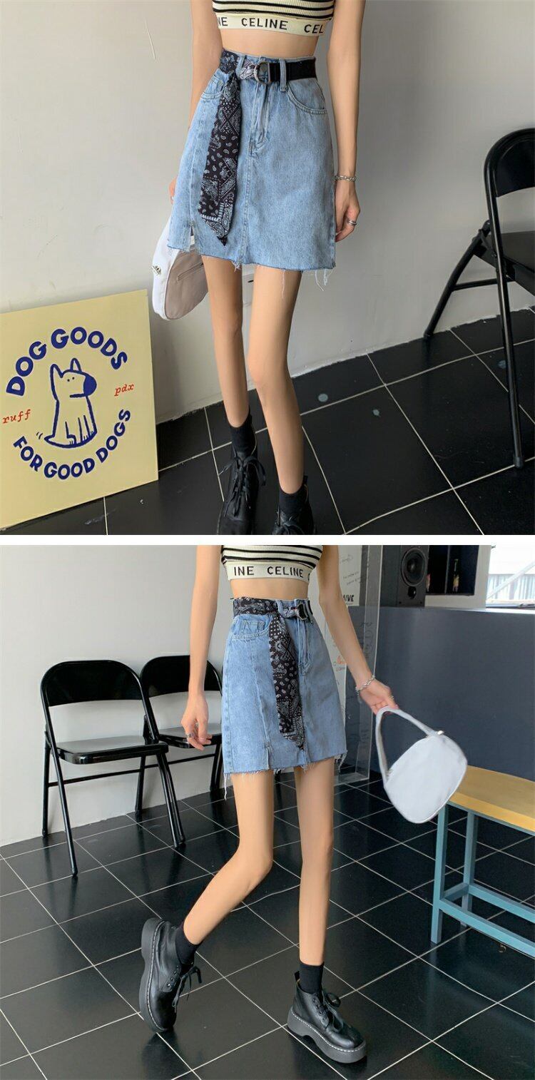 夏服ハイウェストカジュアルAラインスカート レディース 夏物 ウエスト コーデ marchs6783144567648