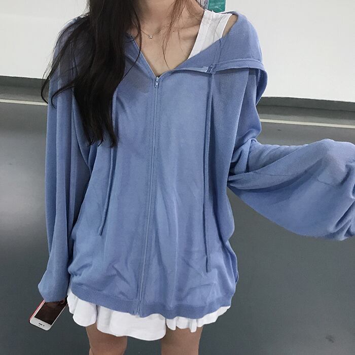 ニットシャツ フードジャケット レディース夏服カーディガントップス ロング ピンク 夏物 シルク ピュア 長袖 コーデ marchs6762364838887