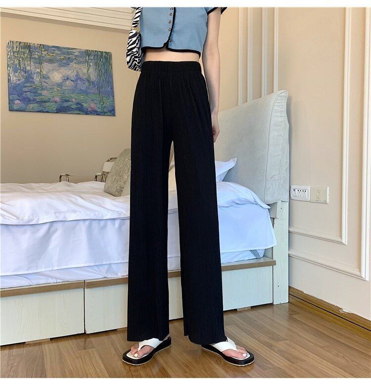 ブラックカジュアルパンツ レディースルーズ夏服ウェスト 夏物 ウエスト コーデ marchs6751876284302