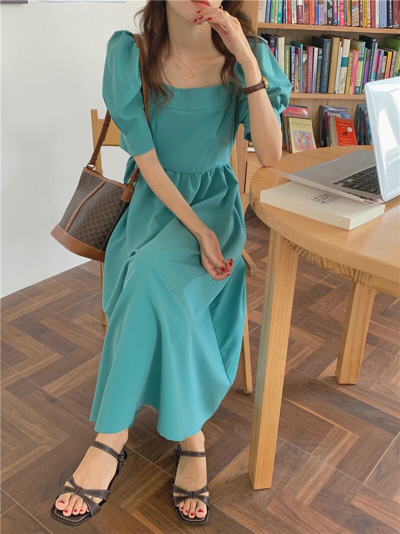 夏服ロングスカート ホルターリボングリーンワンピースレディース 夏物 コーデ marchs675955962584