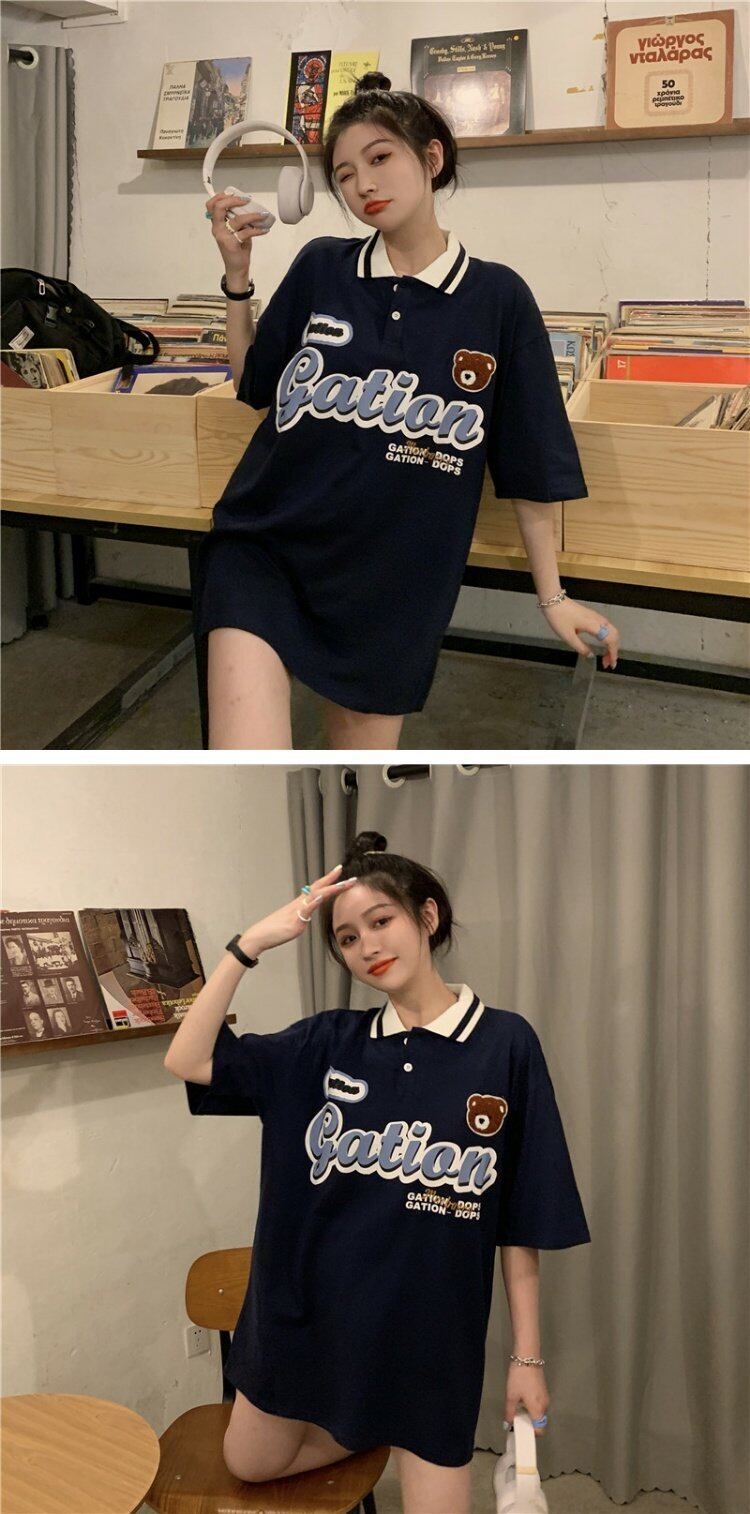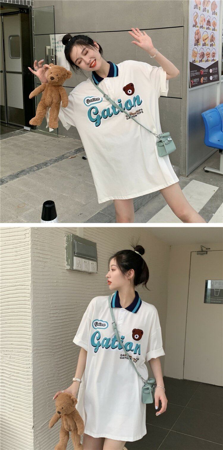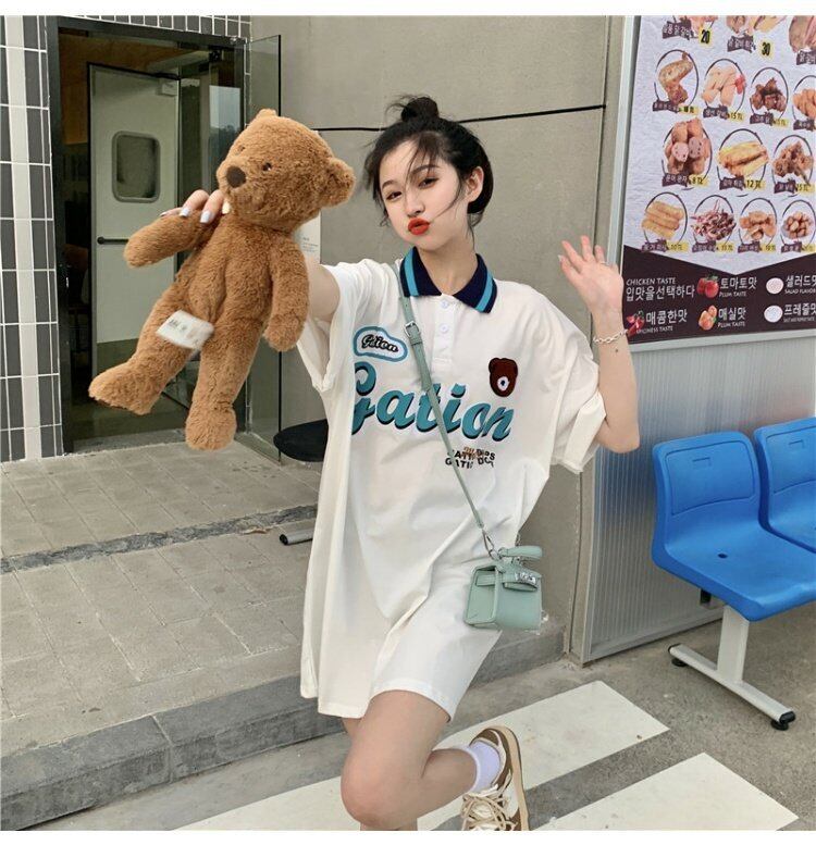夏服韓国ファッションスタンダードカラールーズTシャツレディース レトロ 大人ガーリー スウィート キュート カジュアル 夏物 コーデ marchs6741493732709