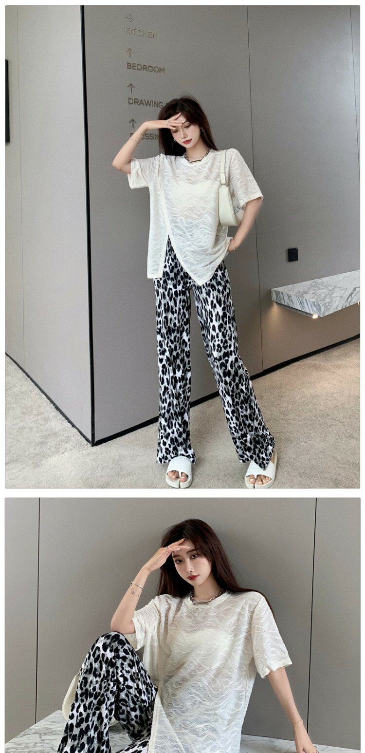レオパードプリント柄パンツ 夏服薄手スタイルハイウェストウェストルーズ ストリート 夏物 シルク ウエスト コーデ marchs6711555448352