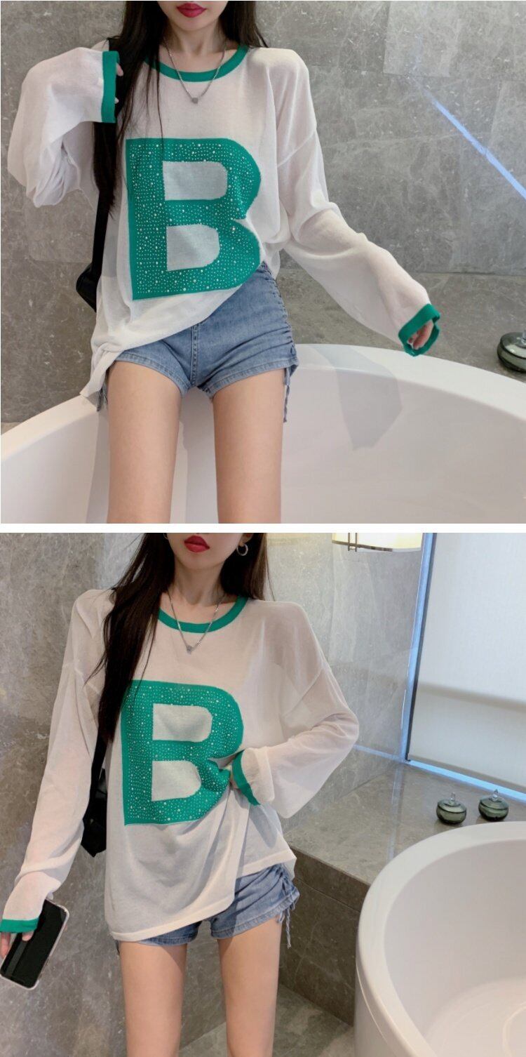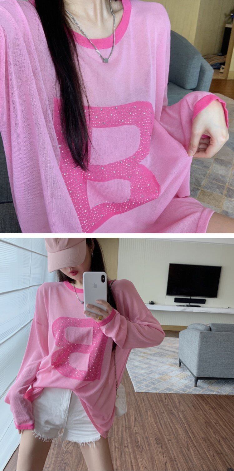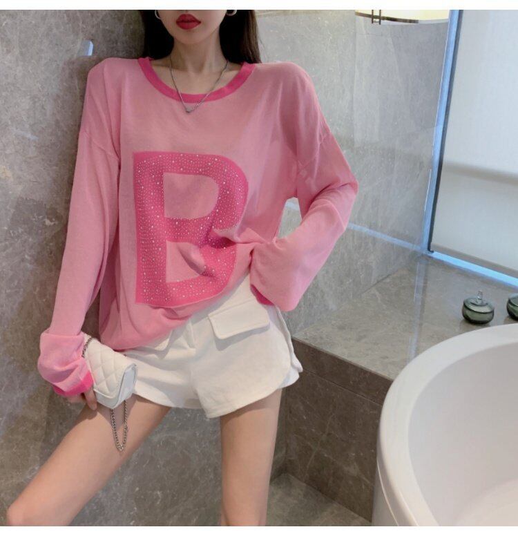 薄手シャツ レディース夏服ブラウス ラインストーンTシャツニットトップス スプリング秋物 ロング ピンク 春物 夏物 オータム シルク ヨーロピアン 長袖 コーデ marchs673191285453