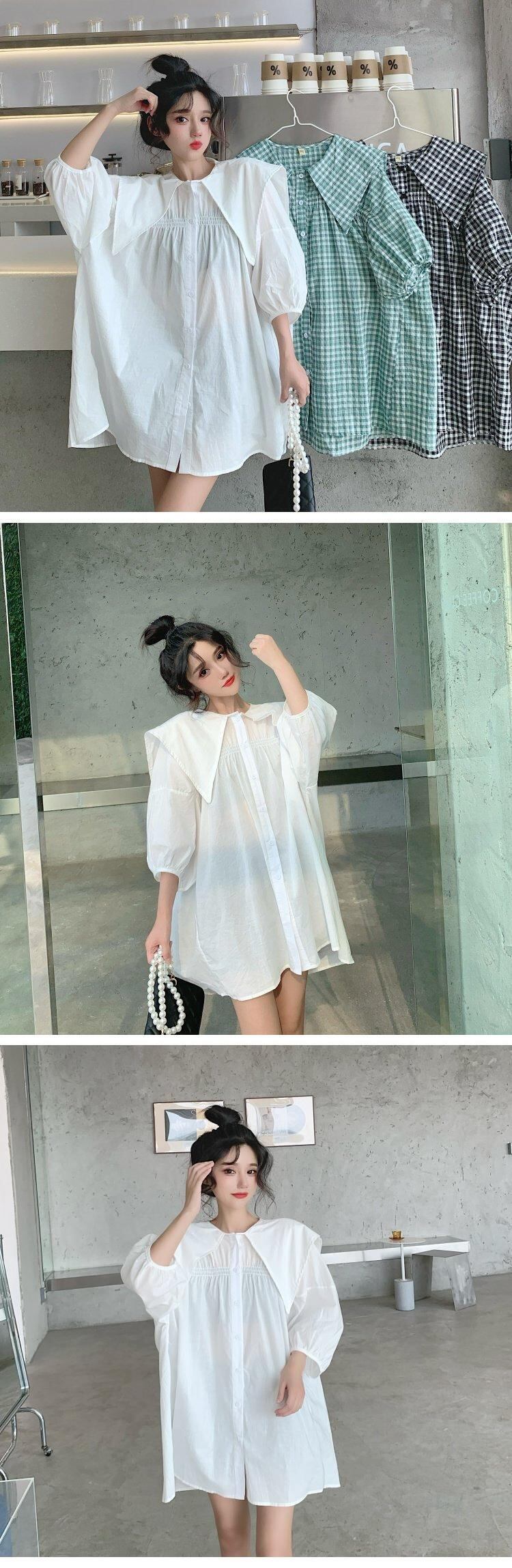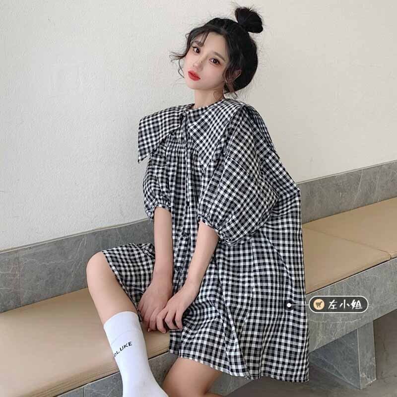 カラー格子柄ワンピースレディース夏服ルーズ韓国ファッションスカート 大きめサイズ 夏物 スタイル コーデ marchs6788931774797