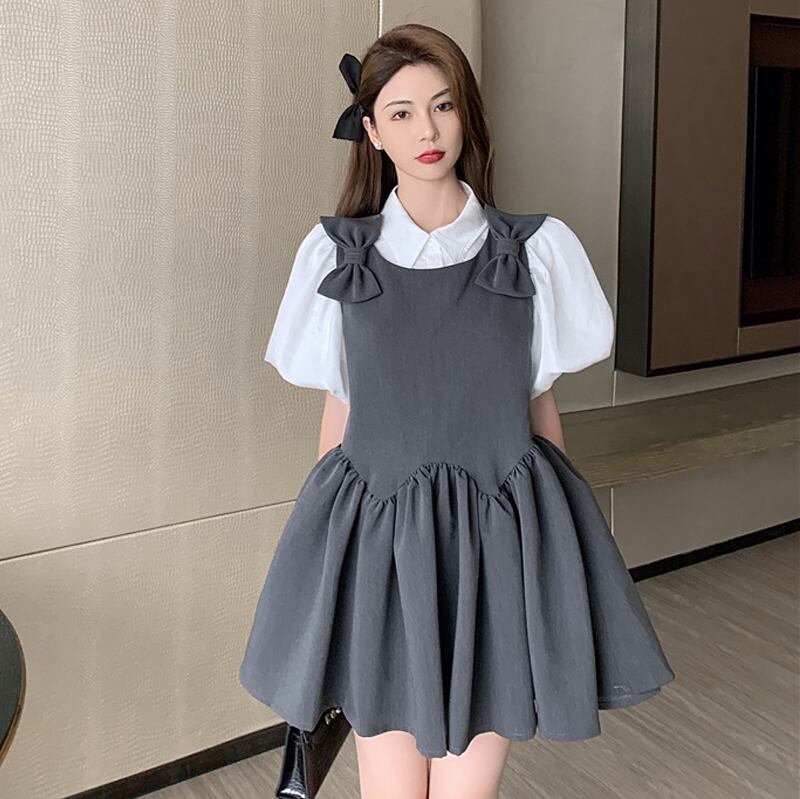 スリーブシャツ レディース夏服リボンウェストワンピース 大人ガーリー スウィート キュート カジュアル 夏物 ウエスト コーデ marchs6726349328523