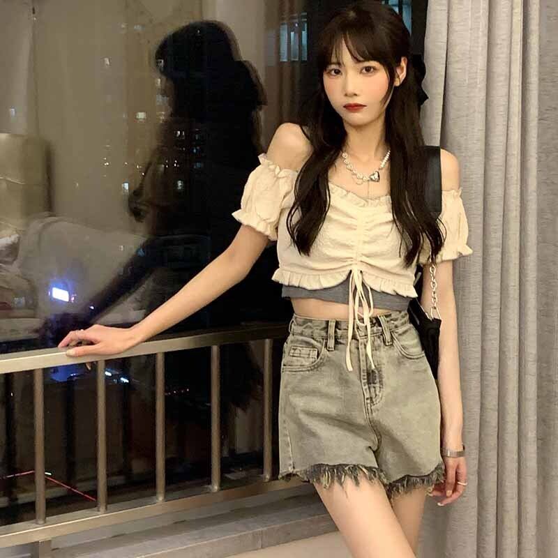 レディース夏服ギャザーショートトップス ストリート 夏物 コーデ marchs6717596568441