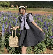色:緑のシャツ,紫のシャツ,アプリコットストラップドレス,ブラックストラップドレス