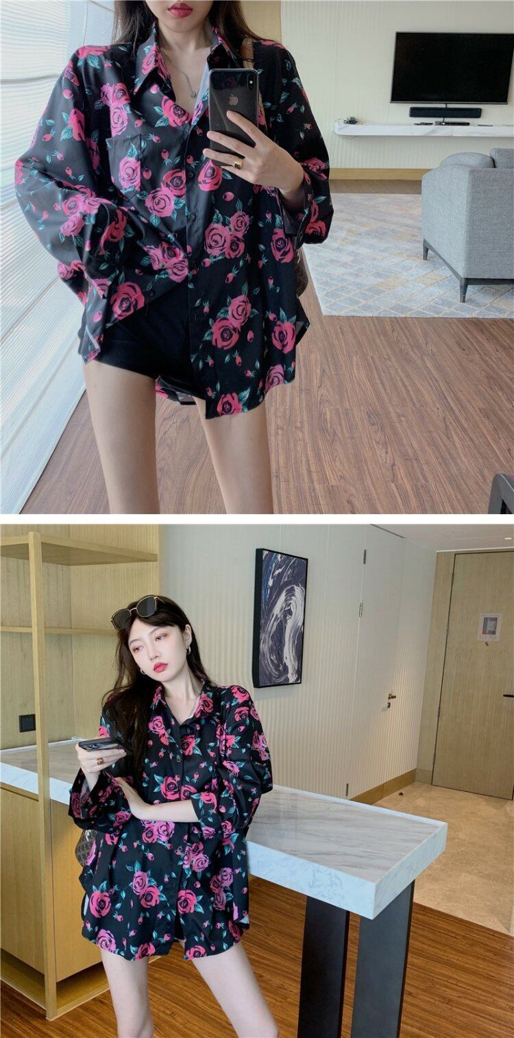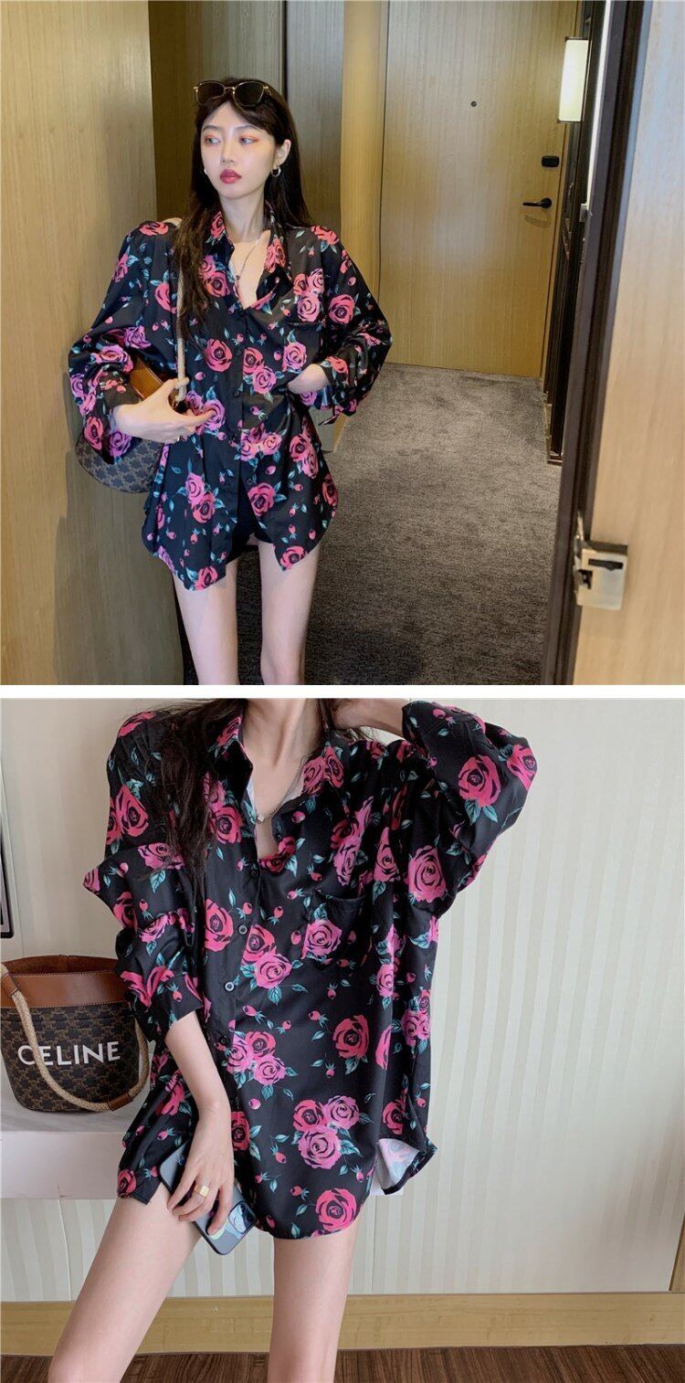 スプリング秋物スタイルスタンダードシャツ ジャケット ロング レトロ 春物 オータム フラワーデザイン 長袖 ミドル丈 コーデ marchs6784251405069