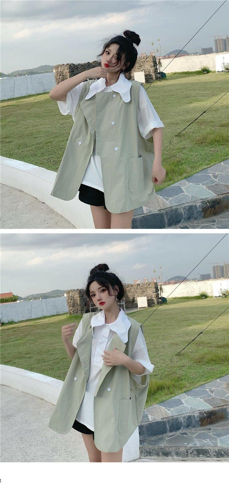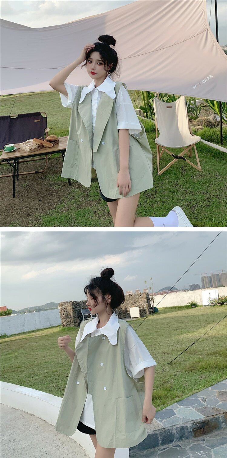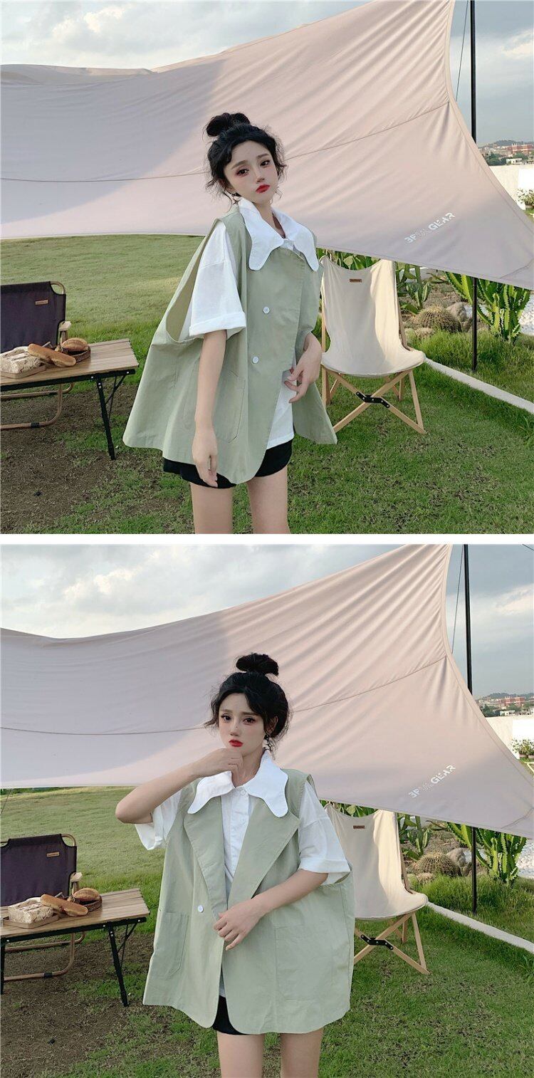 色:白いTシャツ,黒いTシャツ,グリーンベスト,白いベスト