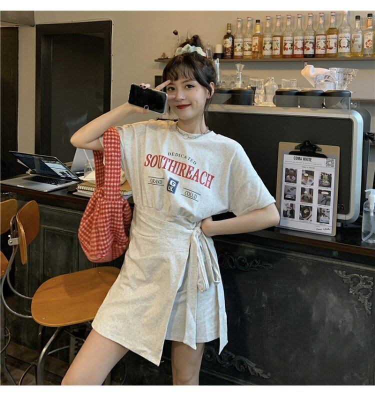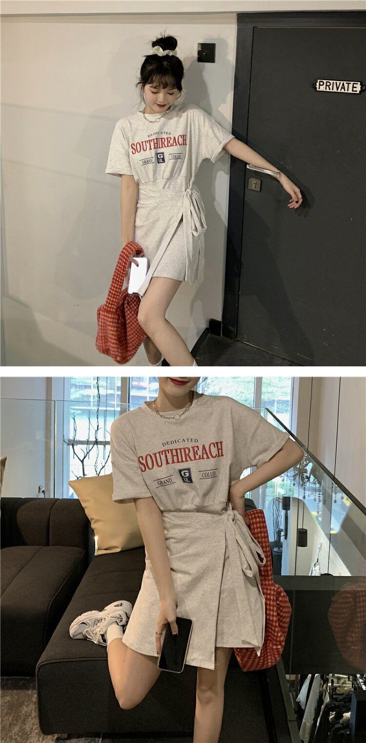 スカート レディース夏服スタイルウェストTシャツワンピース コットン 大人ガーリー スウィート キュート カジュアル 夏物 ウエスト コーデ marchs674409113258