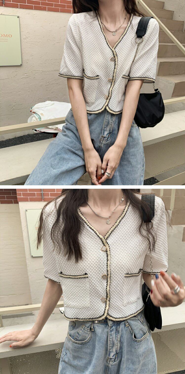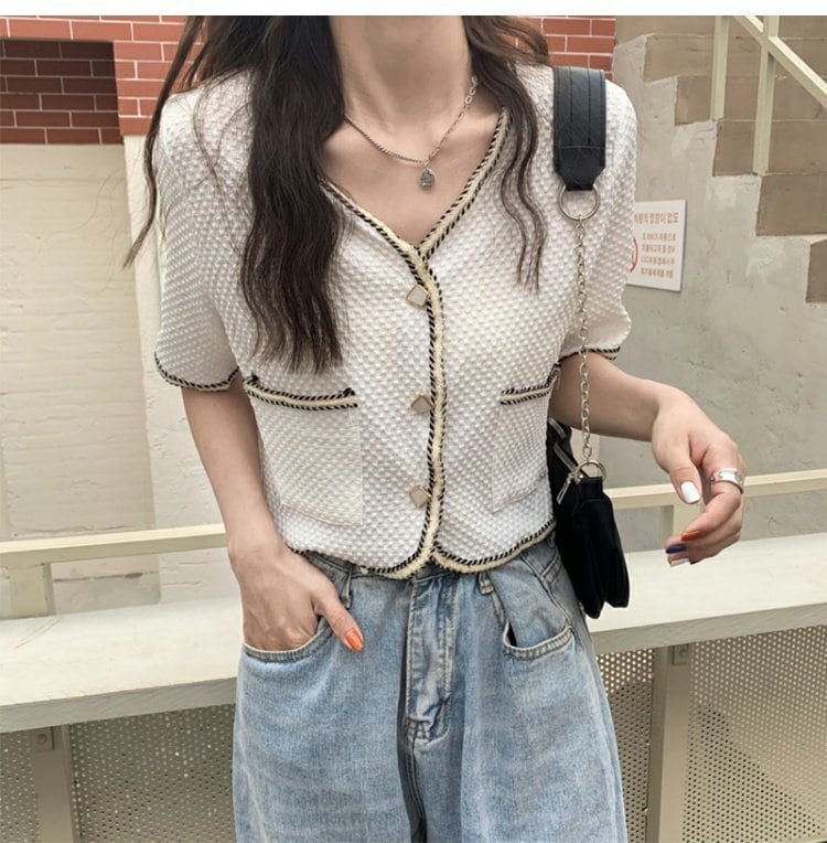 ルーズ薄手ショートカーディガンジャケット レディース夏服スタイル韓国ファッションVネック 夏物 コーデ marchs6779489150946