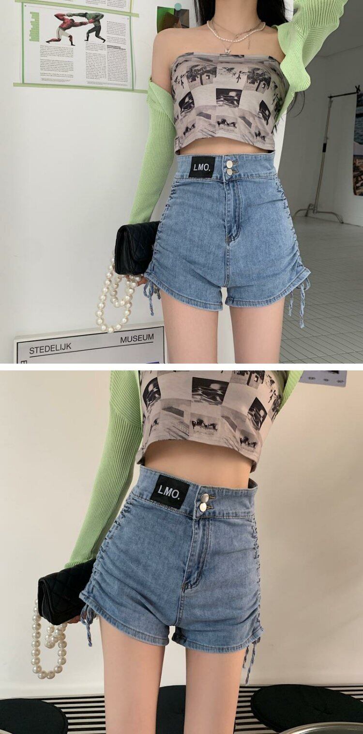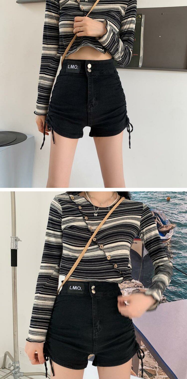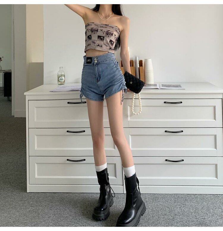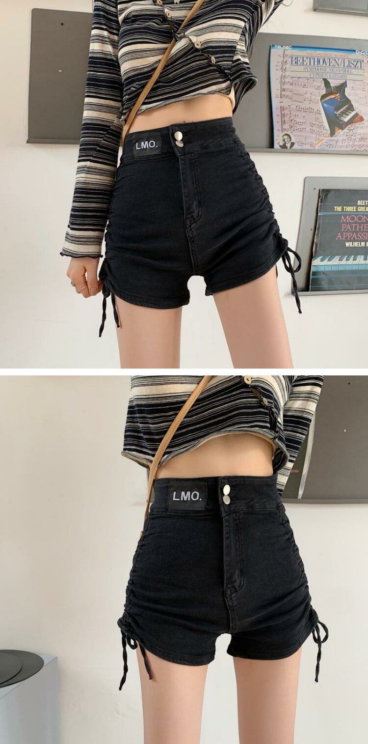 ショーツ レディース夏服薄手ギャザーブラックハイウェストウェストパンツ Aライン 大人ガーリー スウィート キュート カジュアル 夏物 ウエスト コーデ marchs6789472402245