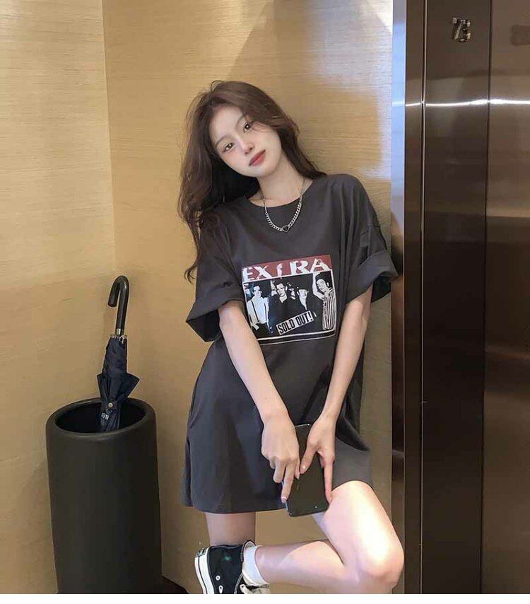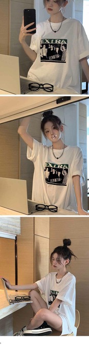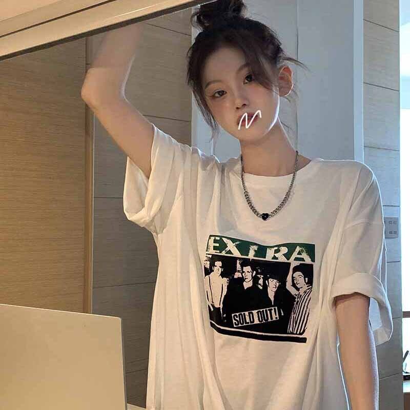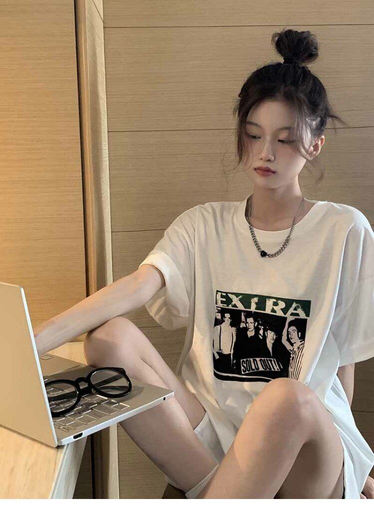 スタイルTシャツレディース夏服プリント柄ルーズグレートップス 夏物 ヨーロピアン ミドル丈 コーデ marchs6755993585831