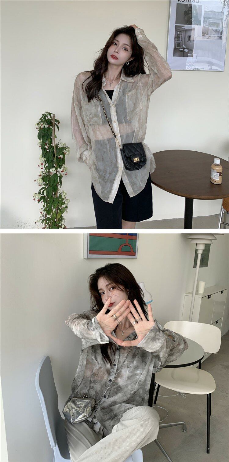カジュアル薄手シャツ レディースプリント夏服ジャケット ロング 夏物 長袖 コーデ marchs6773260941253