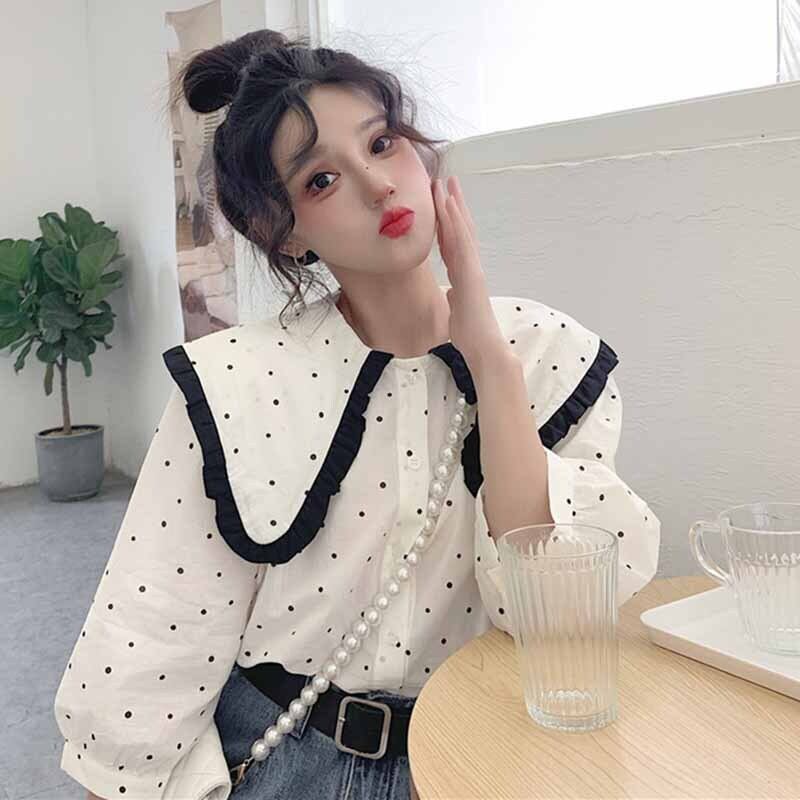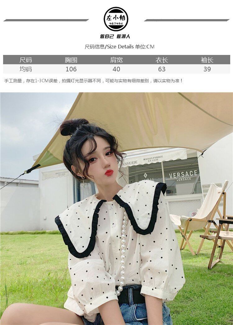 水玉ネイビーカラー半袖スリーブトップス 夏服シャツ レディース ショート ハーフスリーブ 大人ガーリー スウィート キュート カジュアル 夏物 コーデ marchs6737435321945
