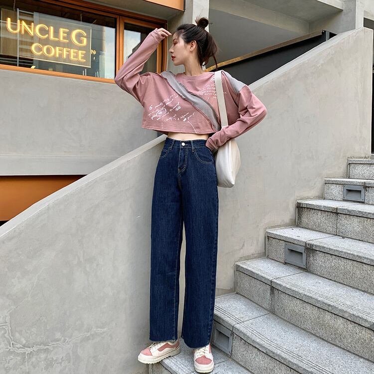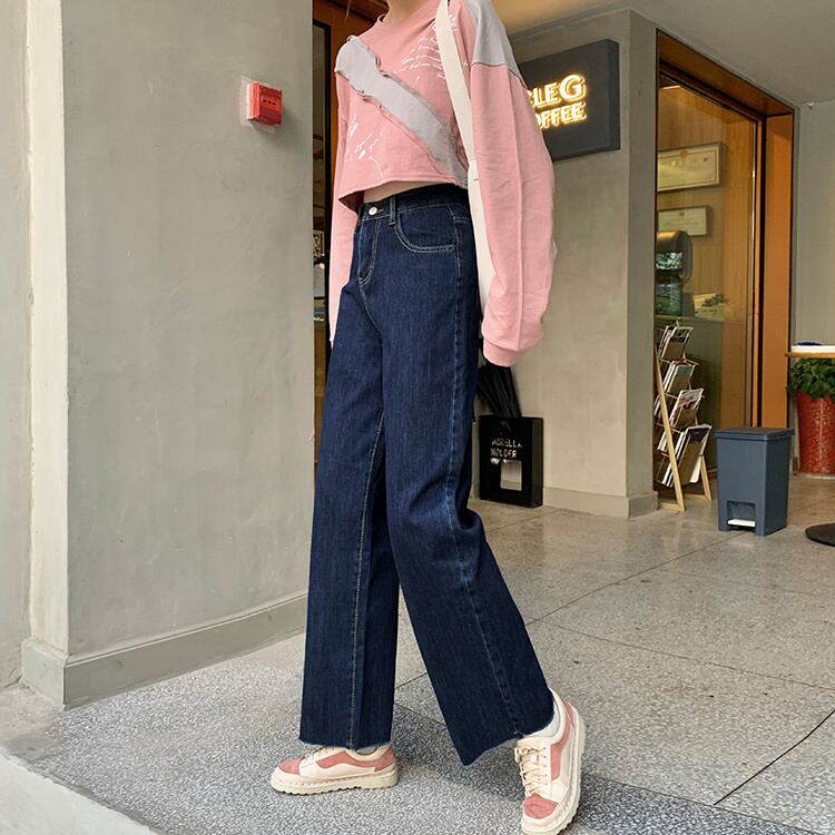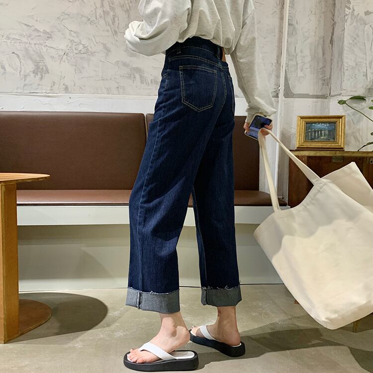 ダークブルーハイウェストジーンズ 秋物ルーズ薄手 オータム ウエスト コーデ Marchs55132240272