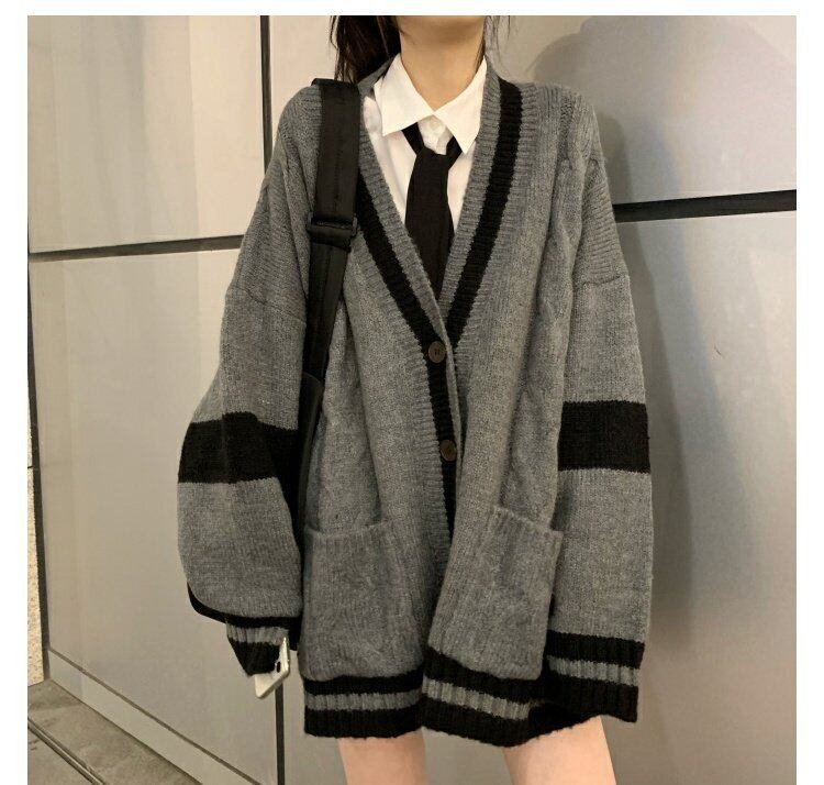 セーター ジャケット スプリング秋物スタンダードルーズVネックニットカーディガン レトロ 春物 オータム コーデ marchs6760900019338