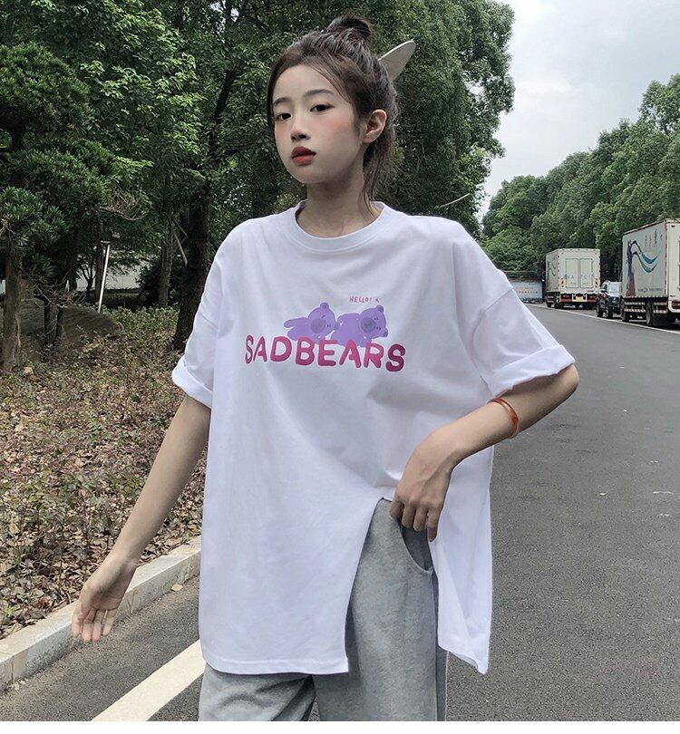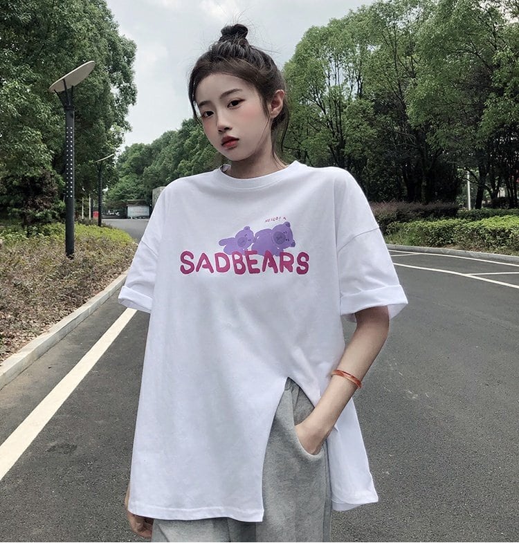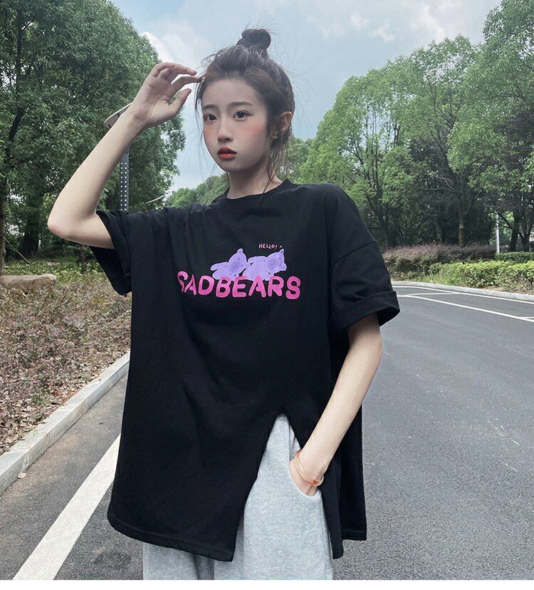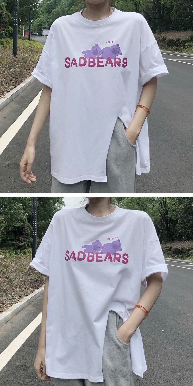 色:白いスプリットレターベアT,黒のスプリットレターベアT
