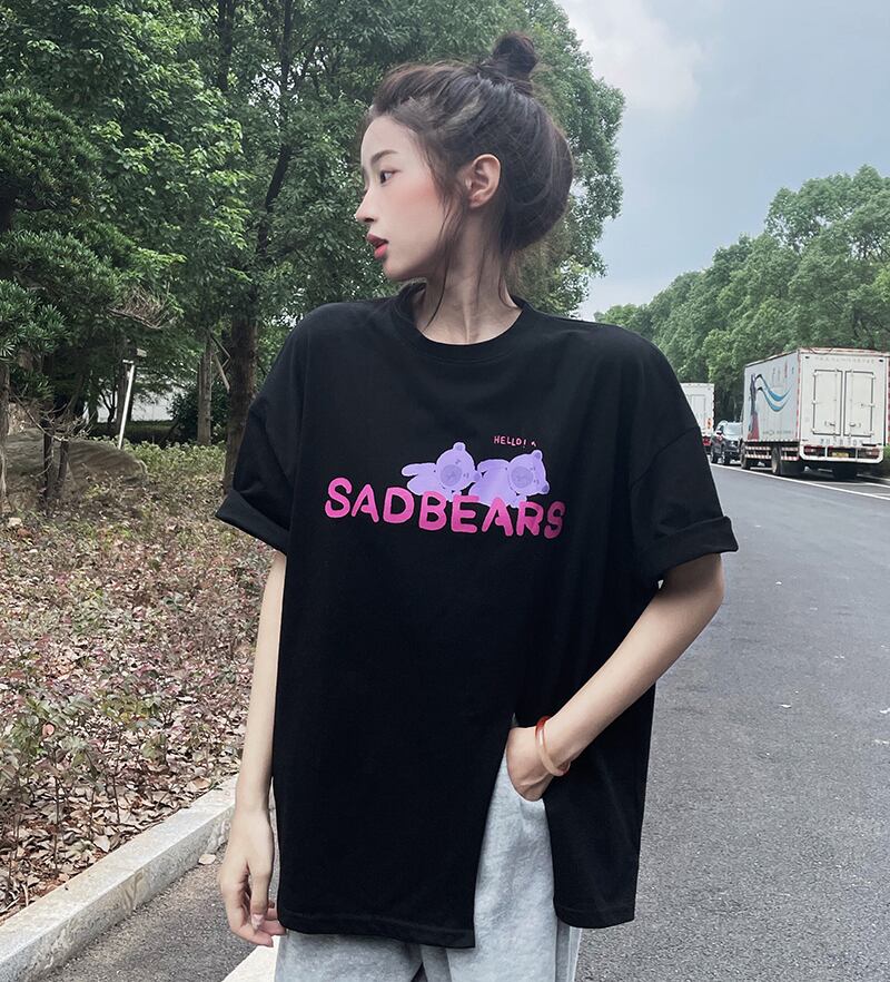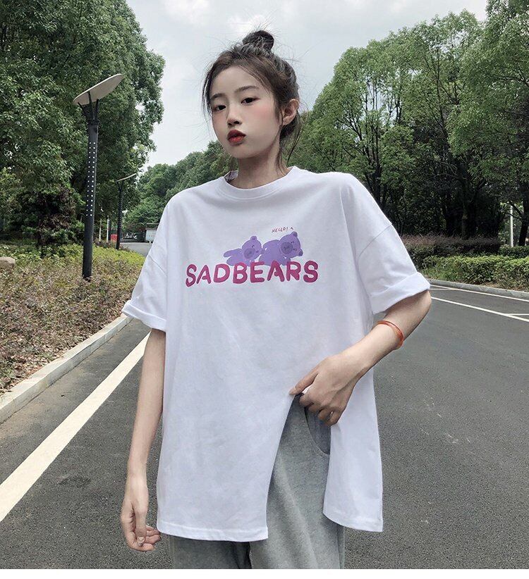 夏服韓国ファッションプリントルーズホワイトTシャツレディース 夏物 コーデ marchs6743797642834