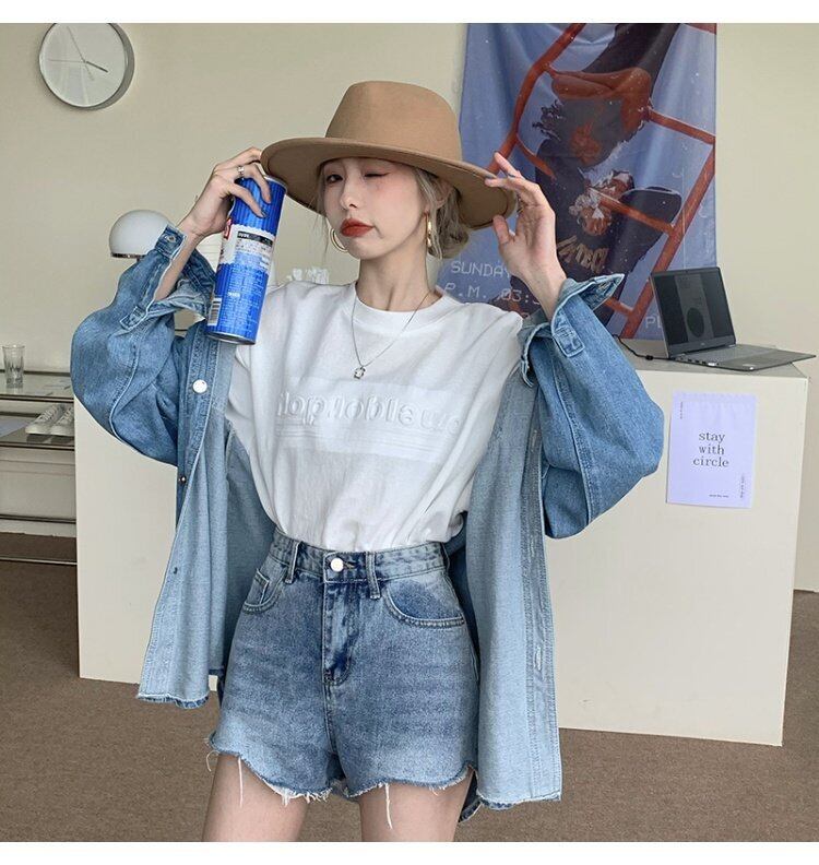 ブラウス 夏服ルーズブルーTシャツレディース 夏物 ミドル丈 コーデ marchs674993044574