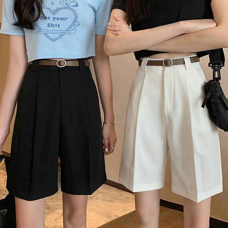 ショーツ 夏服韓国ファッションブラックパンツ ルーズ薄手ワイドレッグハイウェストウェスト 夏物 ワイドパンツ スタイル ウエスト コーデ marchs67366101859